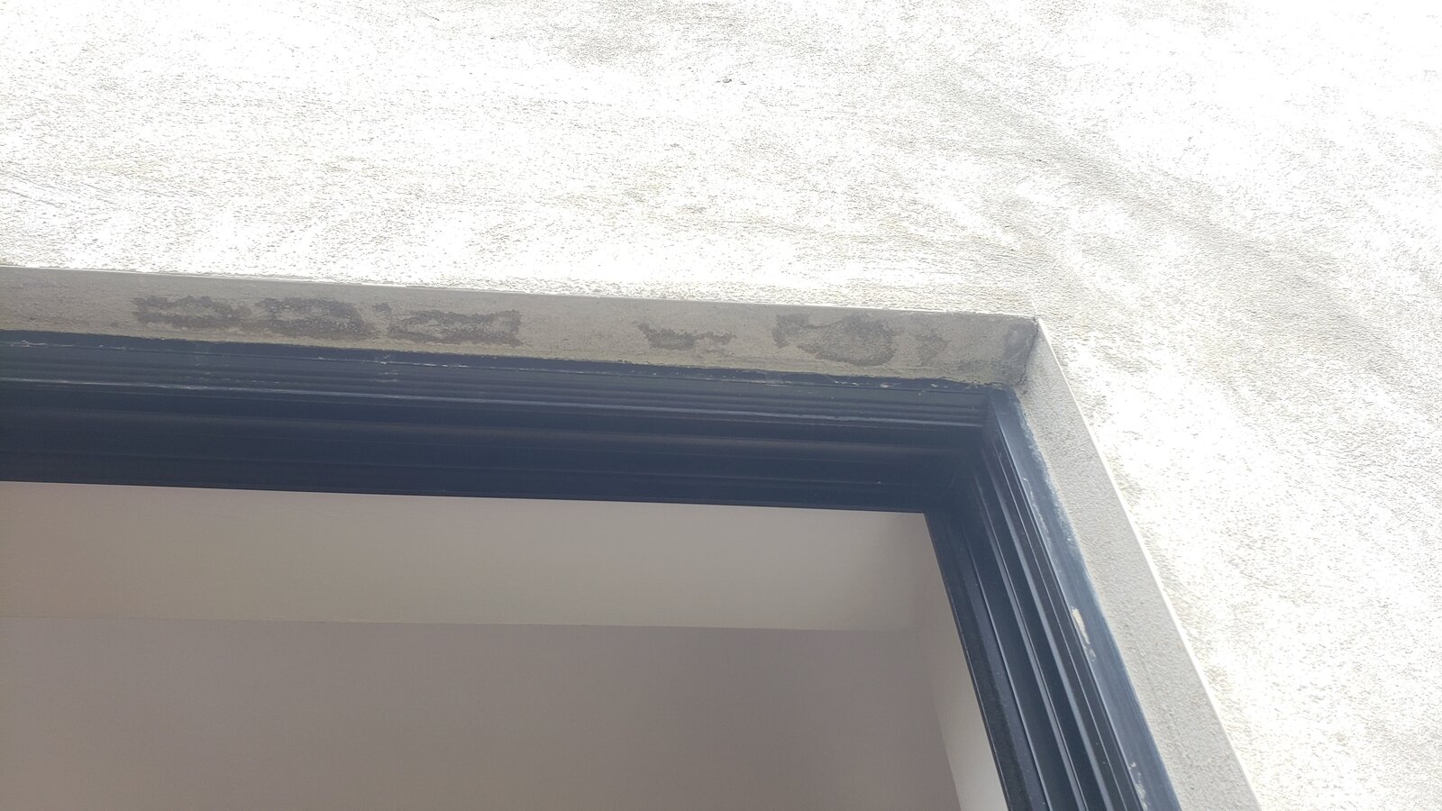 A year or so ago. I had new bifold doors fitted as part of my kitchen renovation. A few months later I noticed a strange waxy/gungy type substance leaking onto the edge of the frame where it meets the plastered reveal. I thought nothing of it to start with, but it kept coming back and low and behold it has corroded the black paint off the frame. I'm wondering if it's even eating ever so lightly into the surface of the metal below.