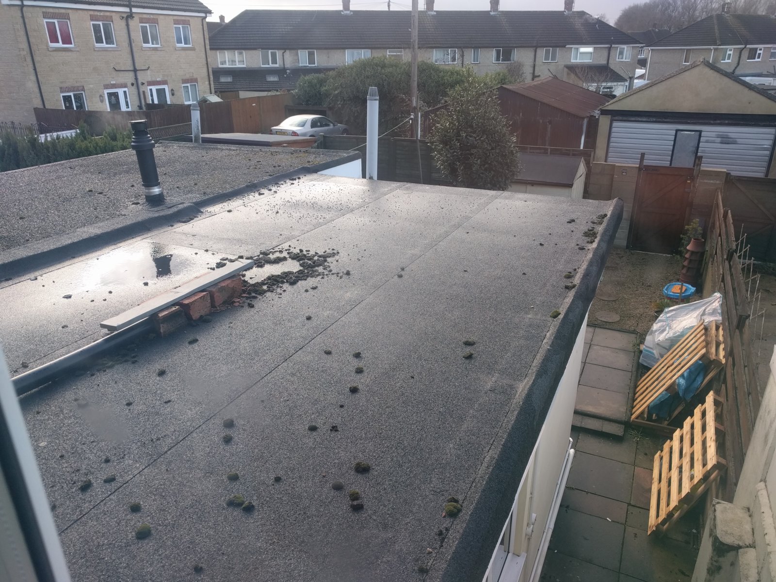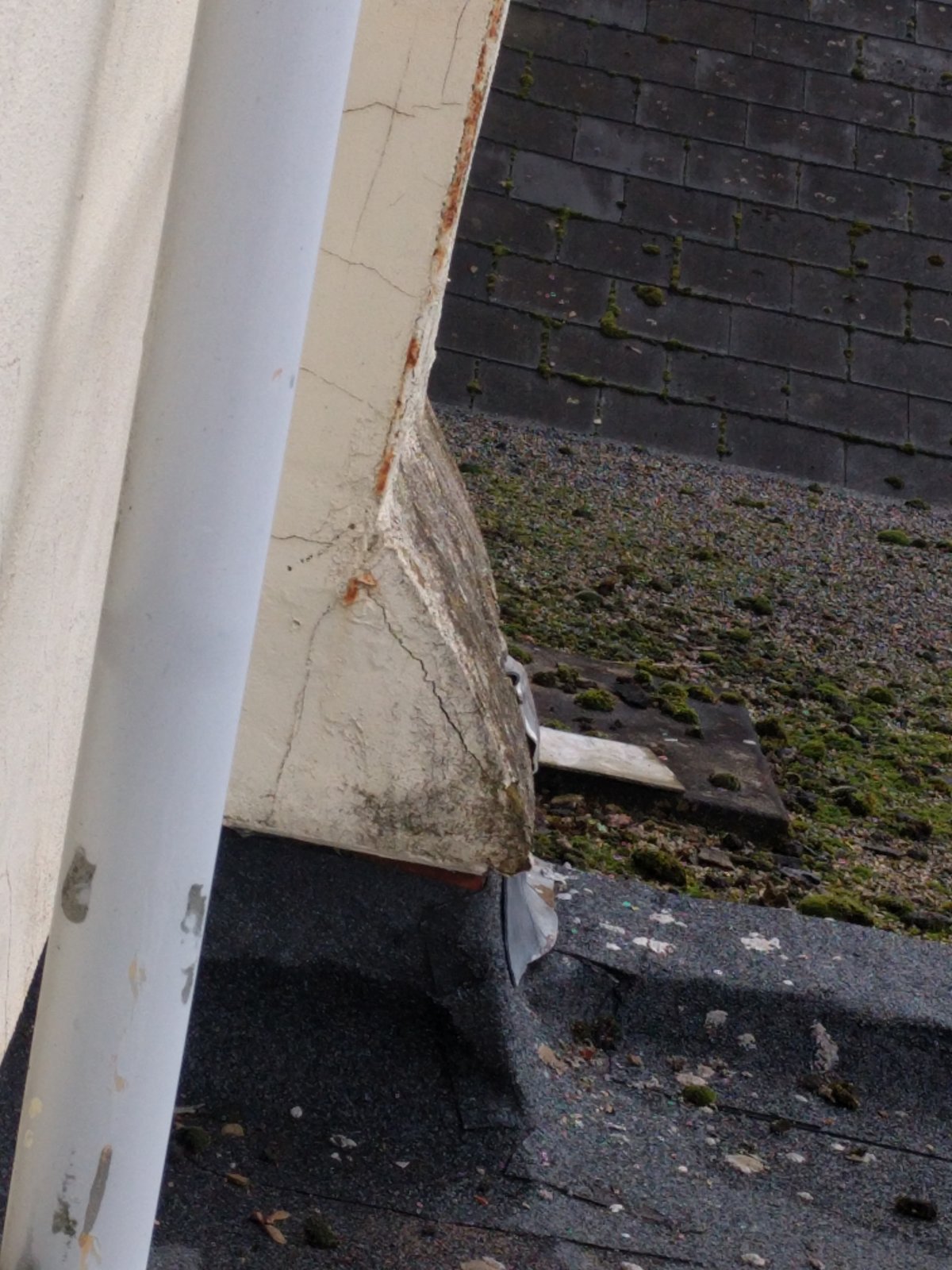 We called the roofing company out who put lead flashing on the side of the old stack by the roof slope and also retouched the felt around the bottom.