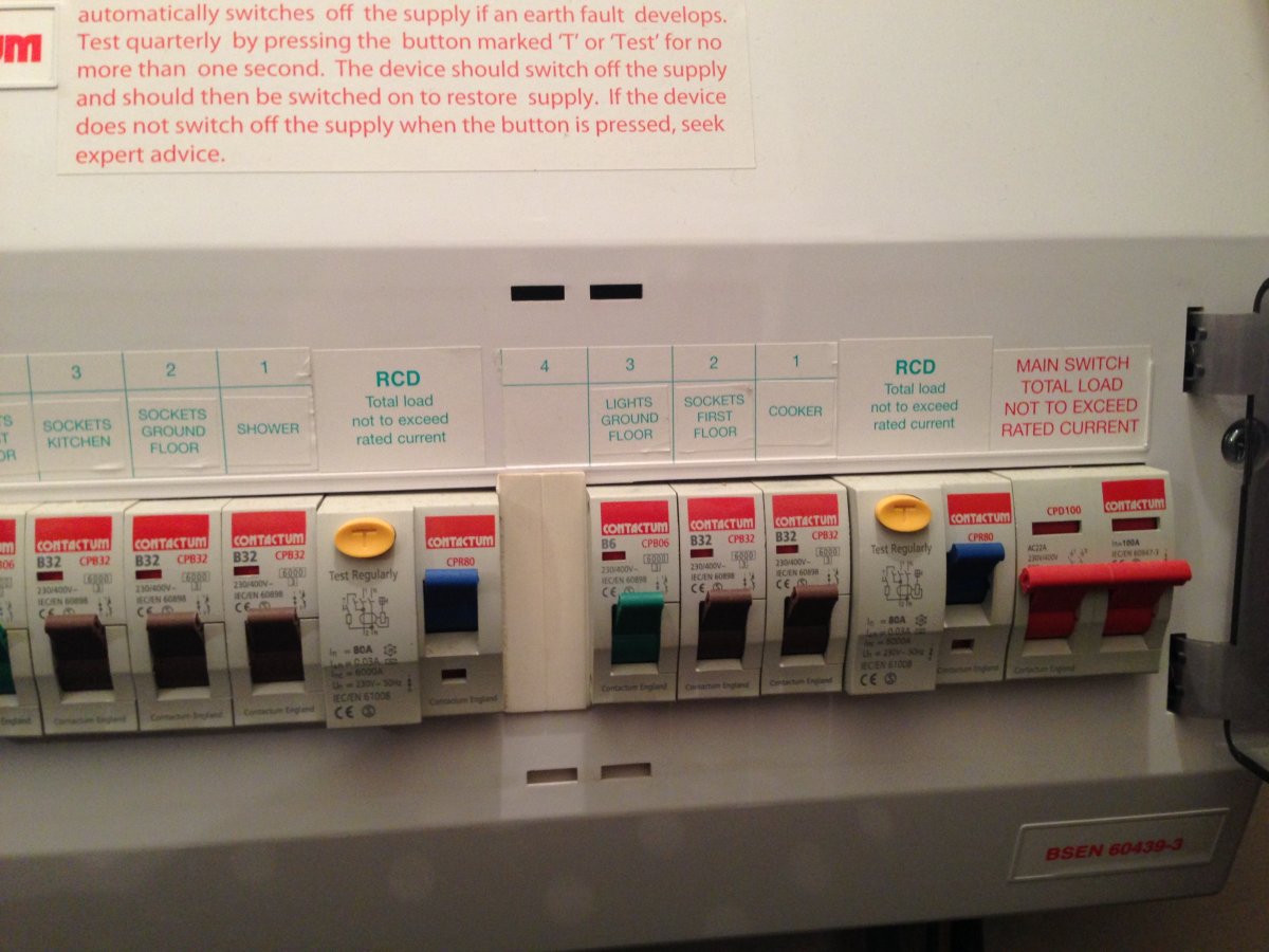 I had the cooker on, then put the kettle on and the RCD tripped. It has just started happening, intermittently. It causes the switch to trip that is marked CPR80 and not the individual switch for the cooker which is marked CPB32.
