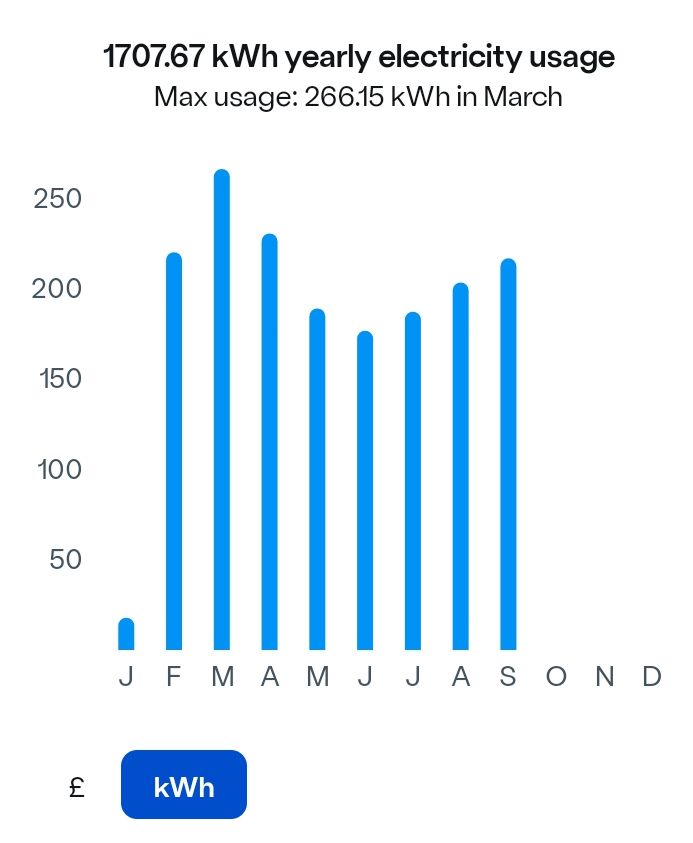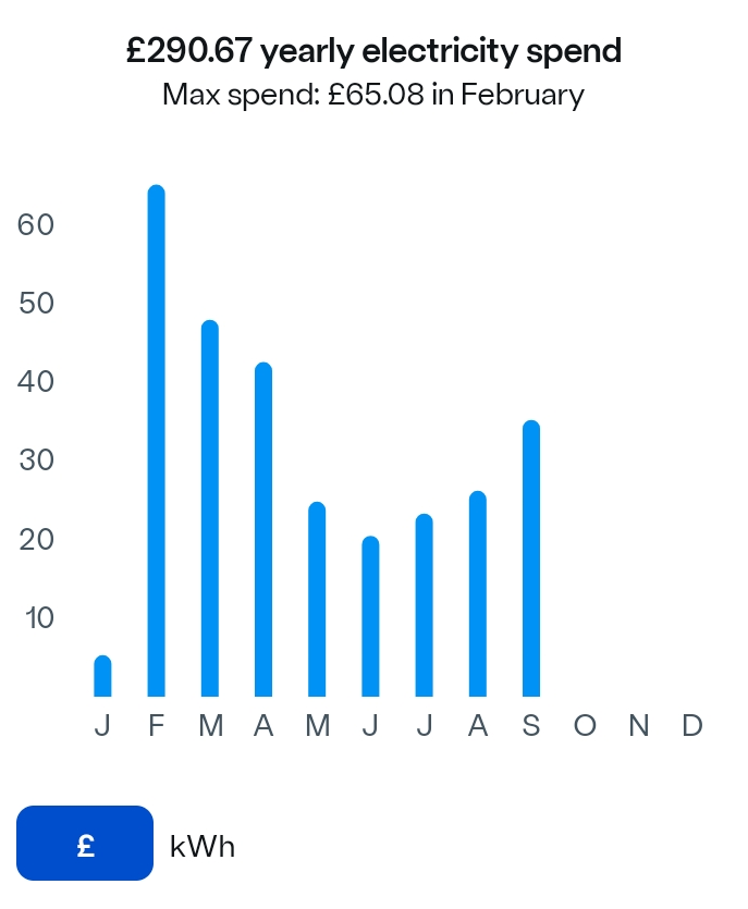 Jan smart meter fitted, hence low, the marked drop April to May was due to using off peak, set to kWh rather than £