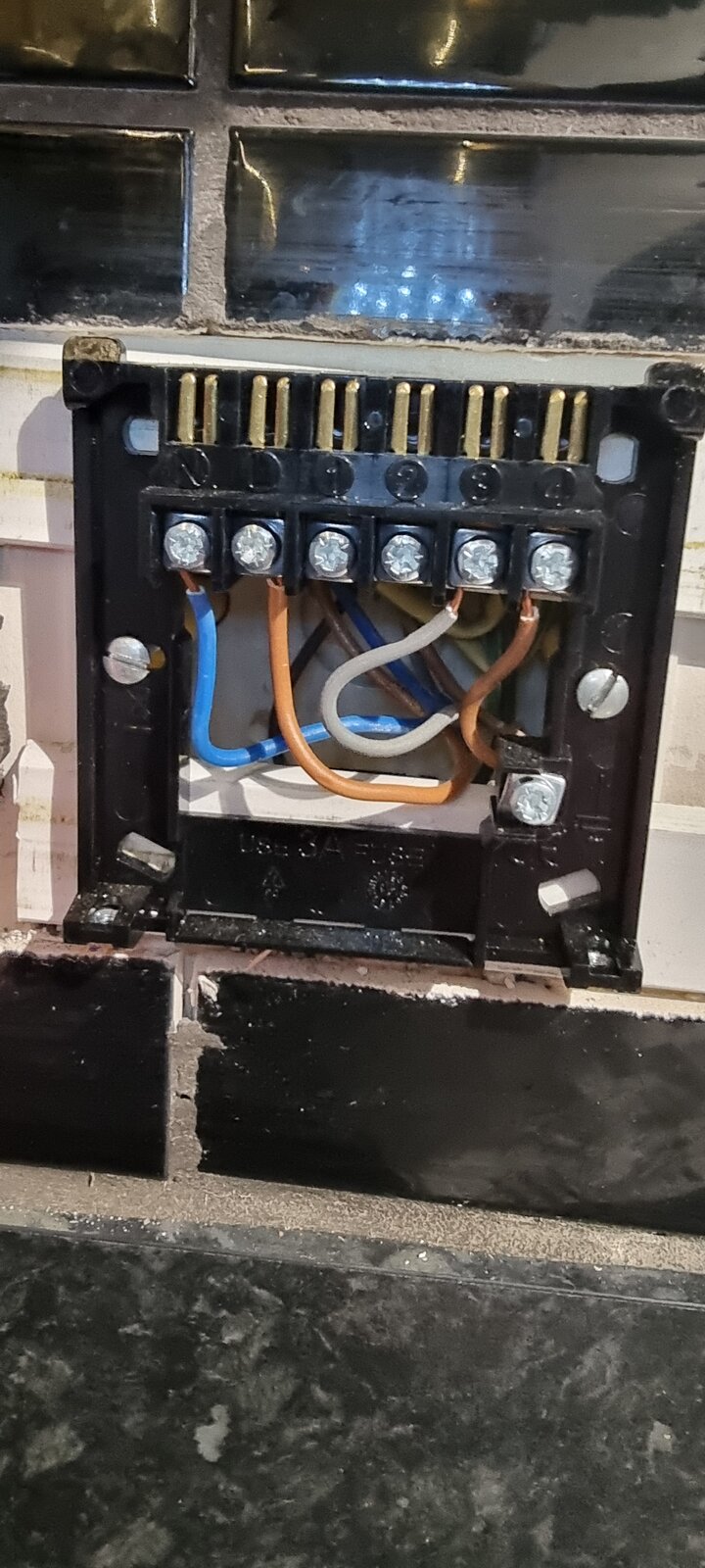 The stat also needs a neutral connection through the black wire. I can't see a black wire connected to a blue at either the programmer, or wiring centre. I think I can see a black wire behind the programmer, but don't see where it goes - hence the question about a nearby FCU.
