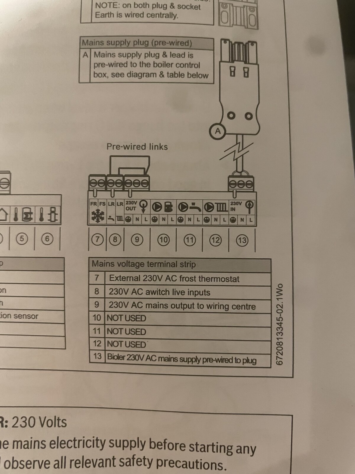 So currently both have power so that the simple part, it’s the connection between the two that is the problem, so I have attached both wiring diagrams, so you have LS/E/LR on the wiring centre, then on the boiler you have pre wired links (LR) for both heating and water heating running into Live for the 230v out, just can’t find anyone to advise how to connect it right, the electrian told me the link wire should be 3 core and earth (which I have run) but not sure if that’s right!