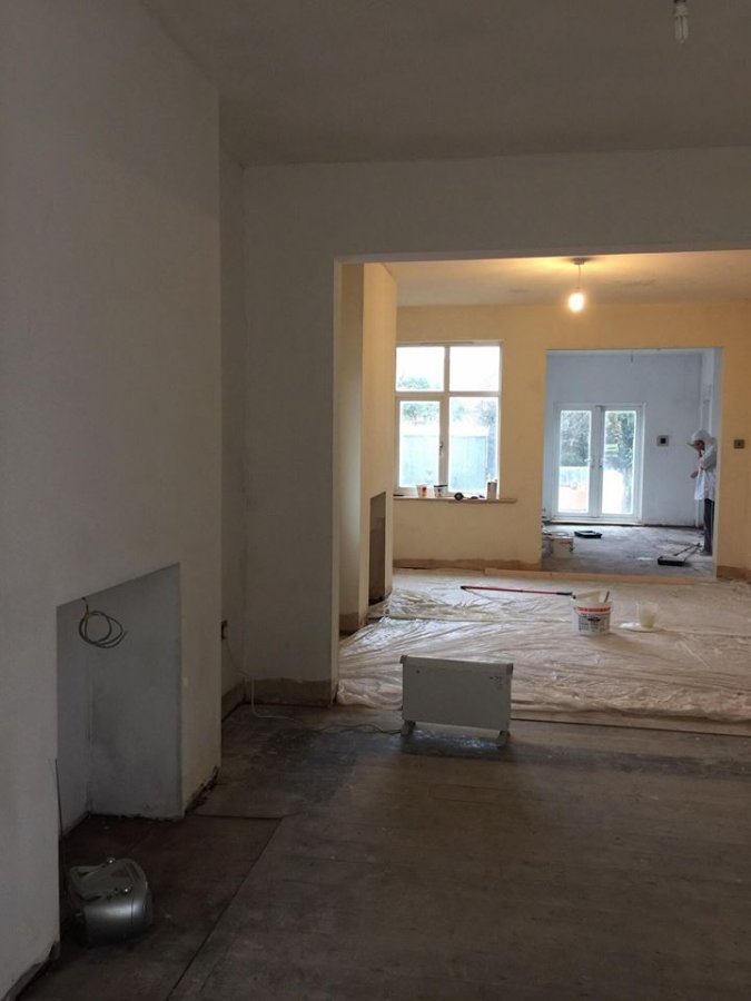 We have had the walls knocked back to brick, a damp proof course and wall membrane installed and just recently, plastered throughout.