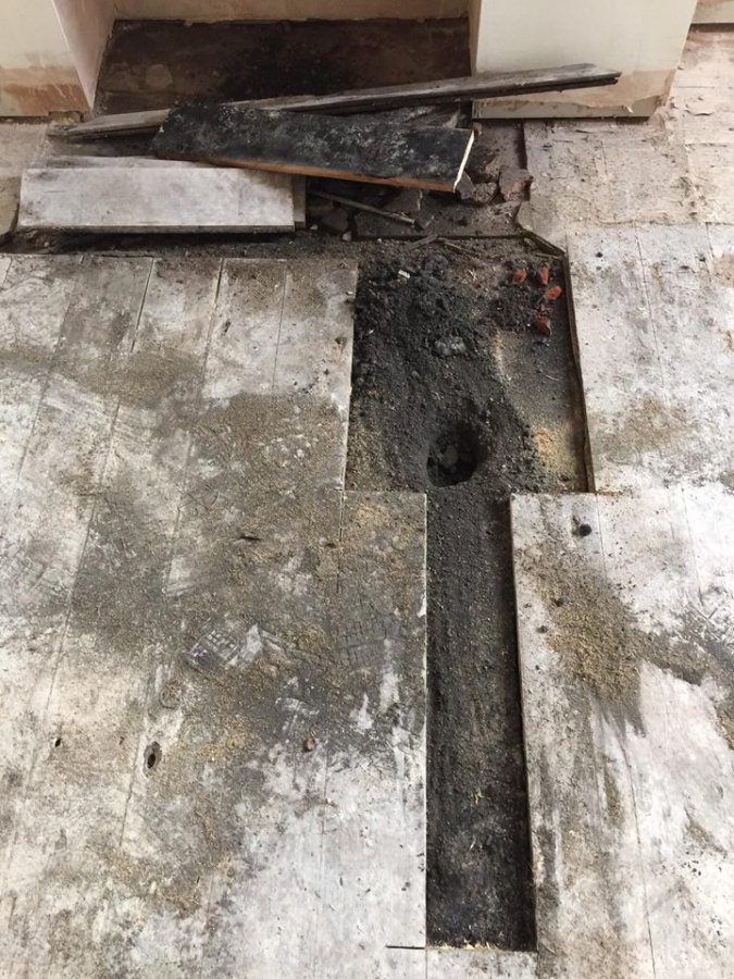 Problems started to arise when I found that several of the original planks in my back room looked rotten. I decided to replace them and continue with my plan. To my shock once I had removed the first plank, I revealed a layer of condensed black ash, which the planks were laying on top of. I have found that this black ash substance is over a foot deep and encompasses the whole of my back room, some 16 meters squared. My house is open plan and it does not extend to my front room, kitchen, which is concrete, or my hall.