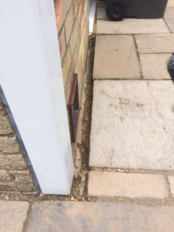 But the long term solution would be to reduce the ground level, as above, it's common for new patios to be built on top of old, until eventually it's too high.