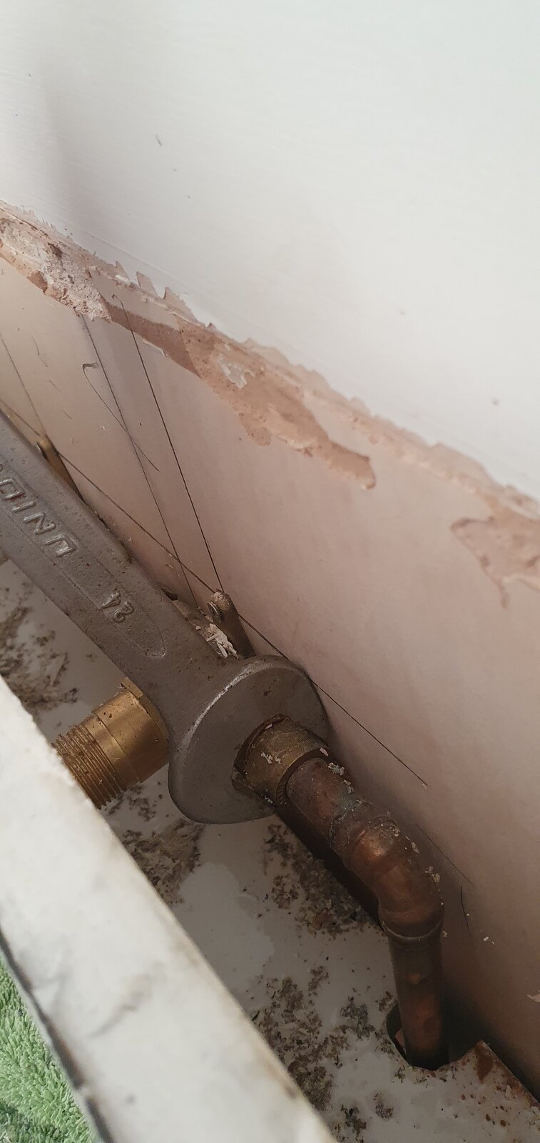 As you can see there is a lip where it overhangs the vertical and I've tried hitting hard with block and mallet it's solid. I fear I'll end up cracking it.