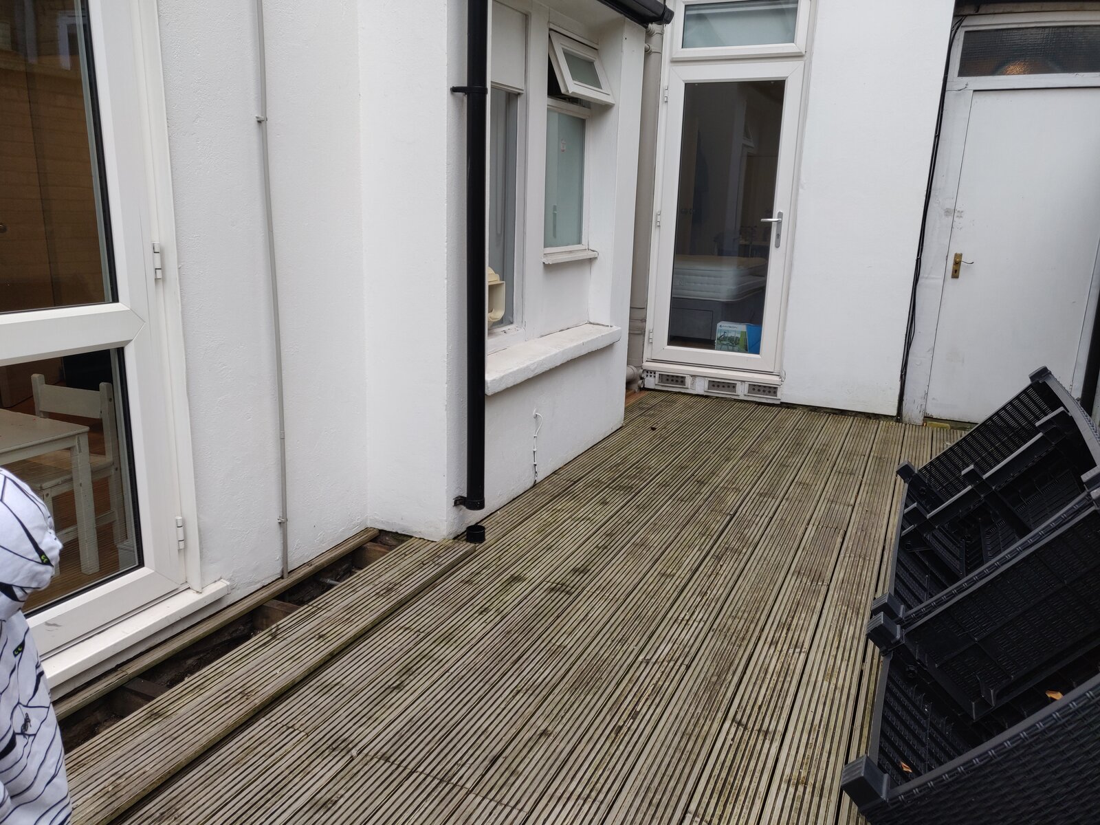 One side backs onto the garden, the other is sitting below the decking.