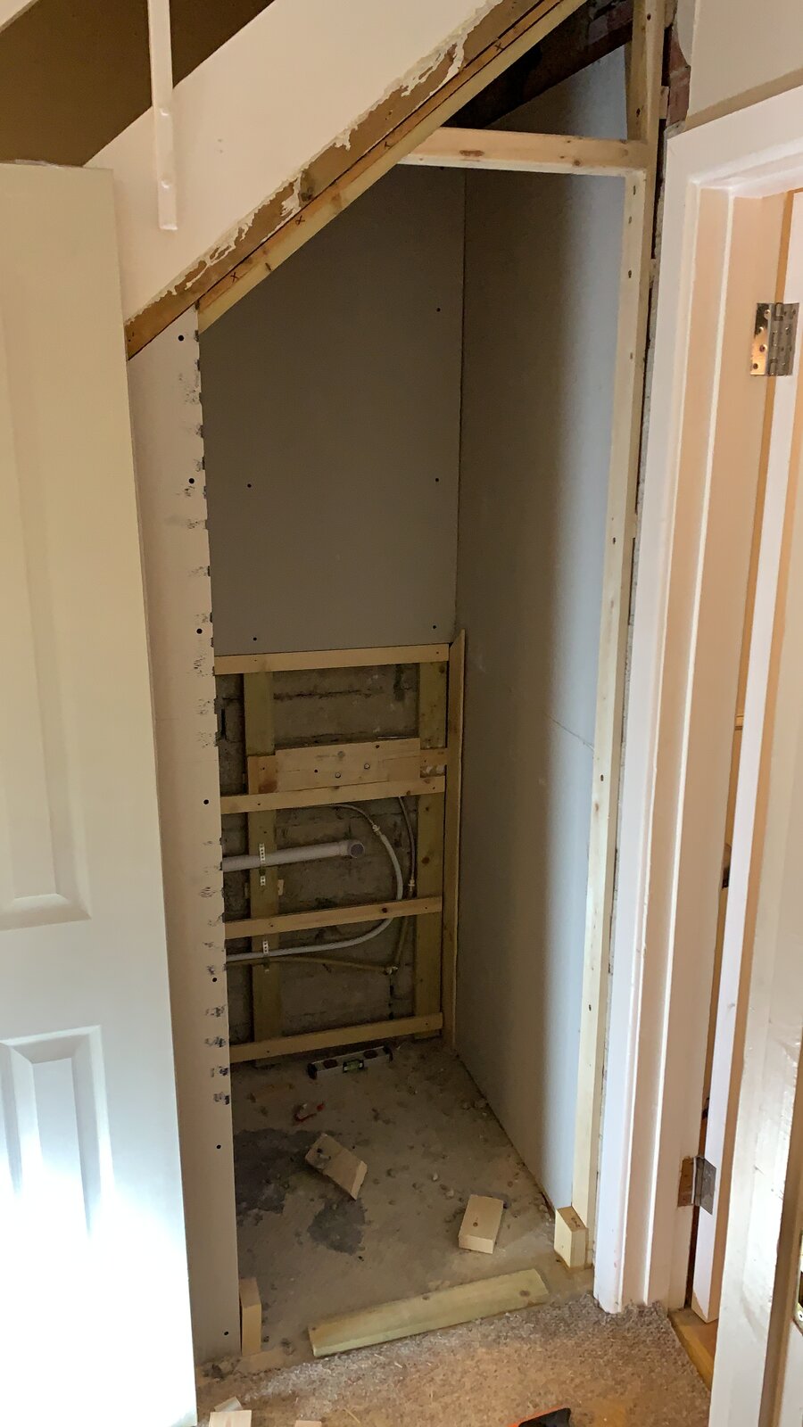 I have been struggling with how to start and go about building the frame/door lining for a door that needs to have a notch taken out of it to fit under the stairs!