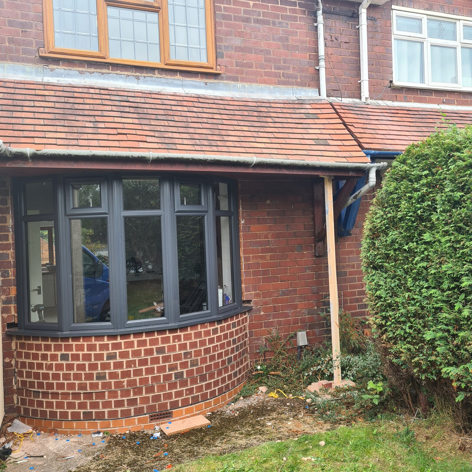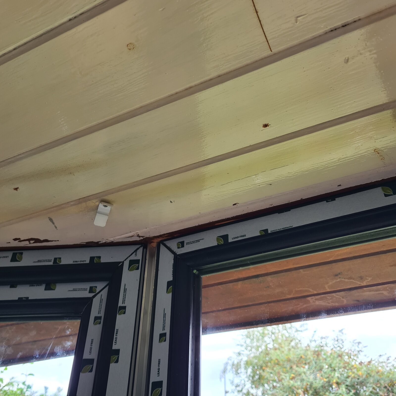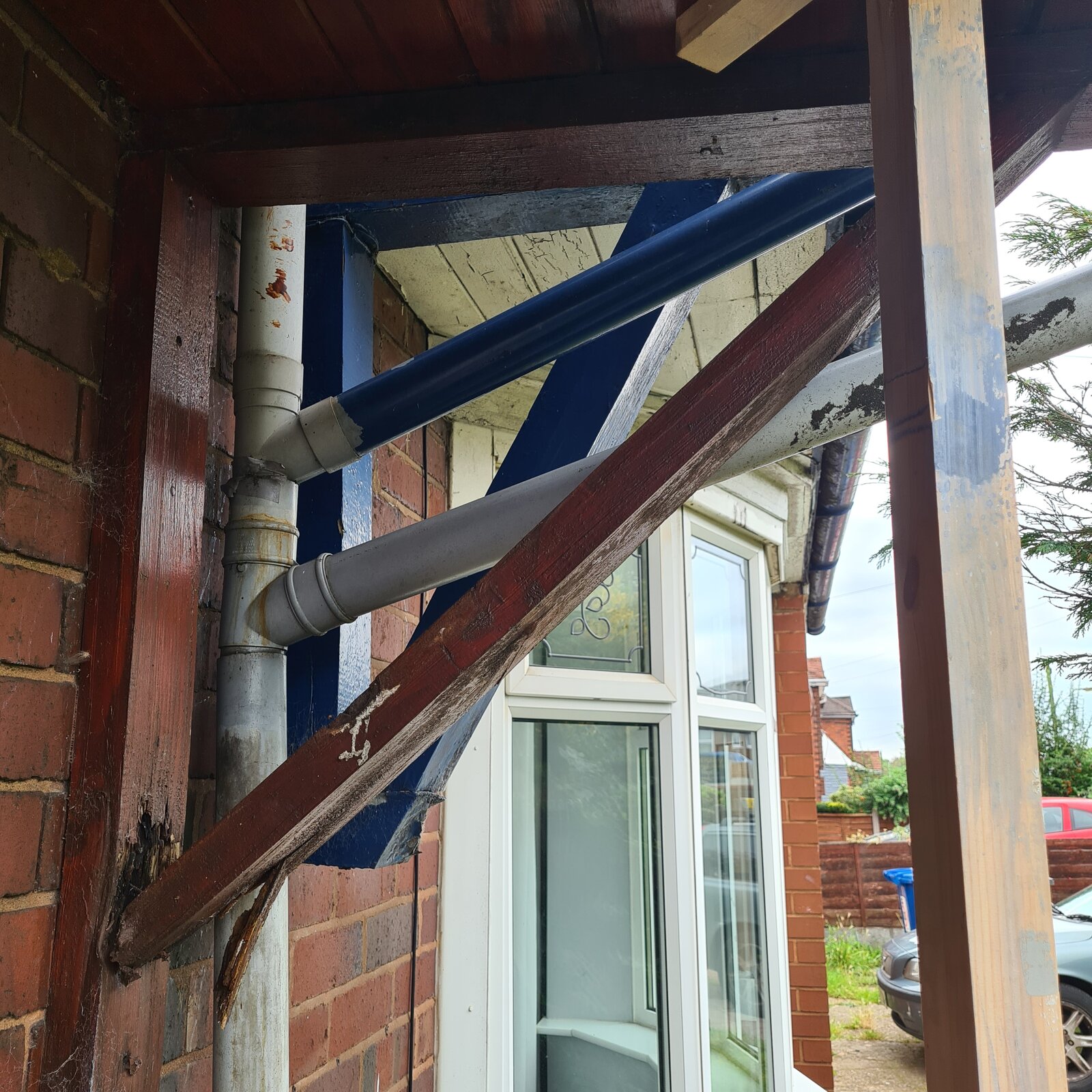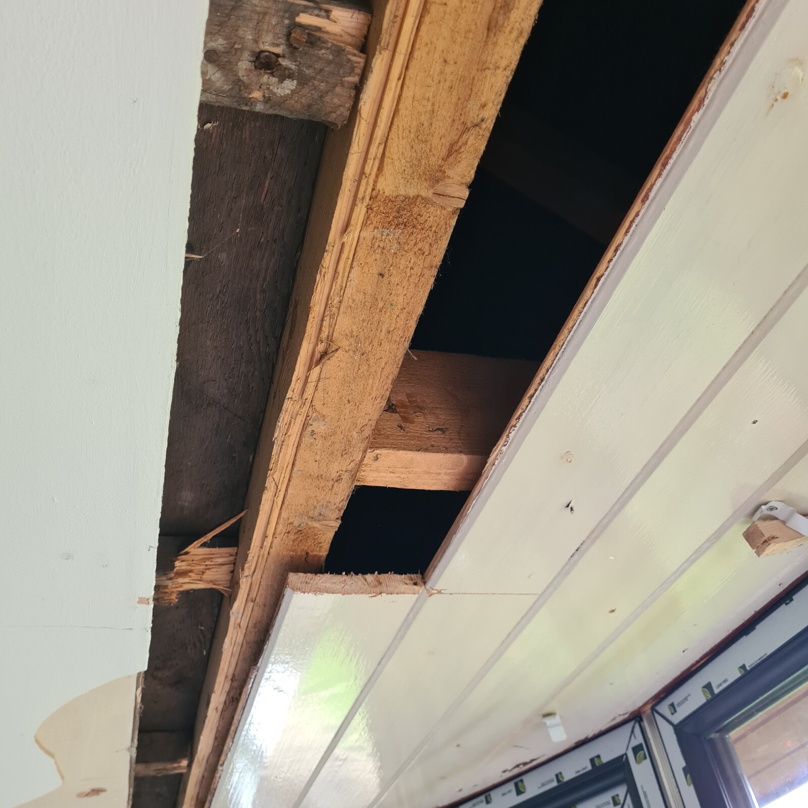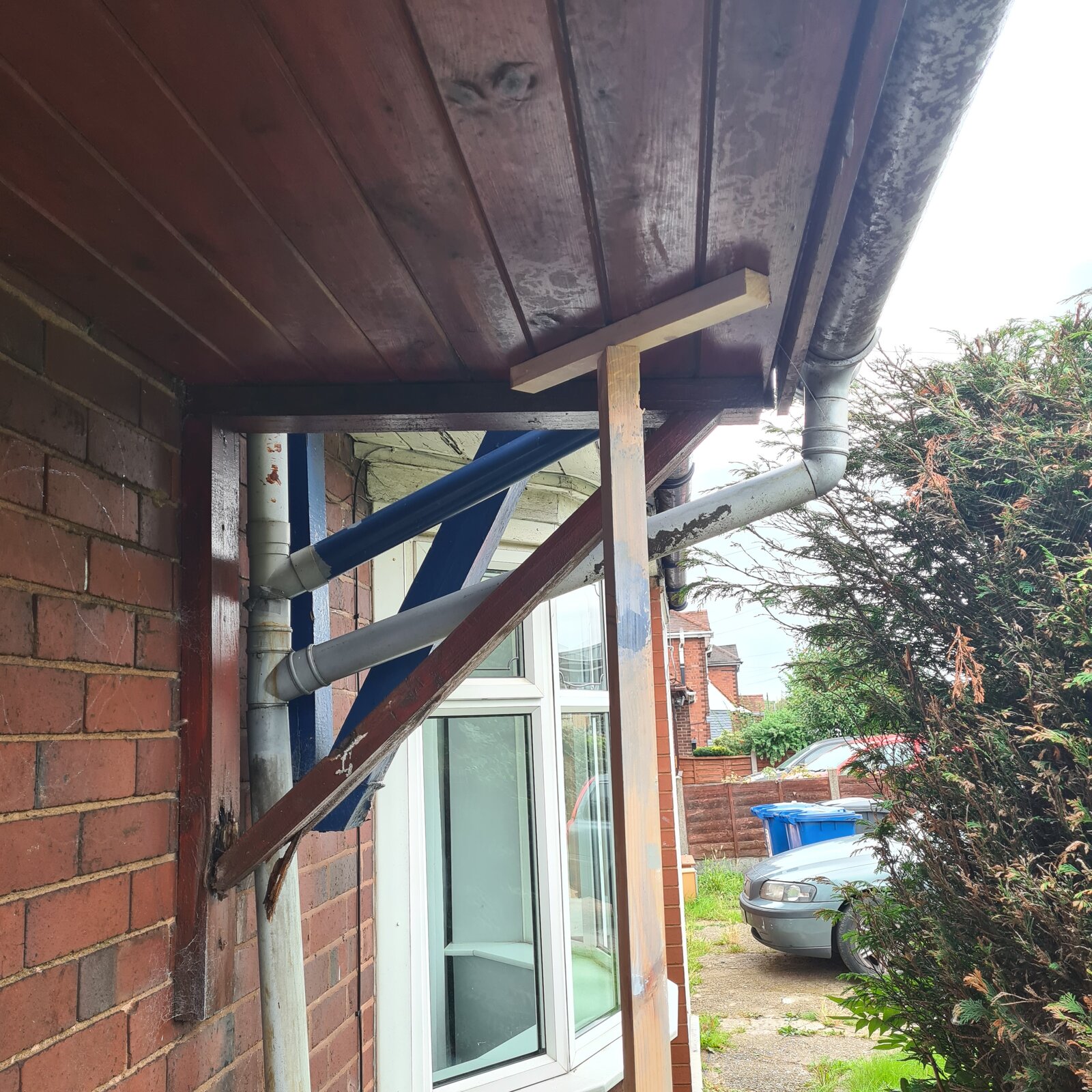 I think I may have gotten myself in a bit of a mess. Yesterday I changed the Bow window in the living room of a house I've just bought. There's a canopy roof above it that goes over the porch and then across the house. The roof looks like it's coming away from the wall on one side where the gallows bracket is rotten, but hasn't moved since I have owned the house so it's on my to do list.