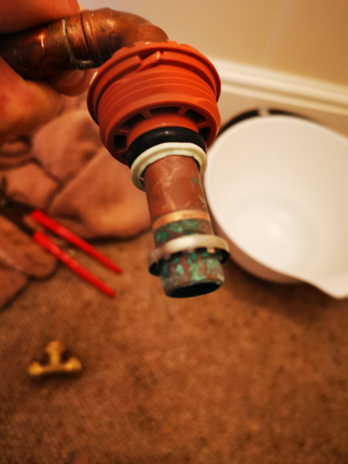 Hi please see attached pic. I'm fitting a salamander water pump tomorrow and fitting right after my water meter. Ideally I want the 90 degree elbow to face the other way from the top of my water meter. Can I undo the orange bit on the top of the meter? Does it unscrew? Will the elbow rotate?