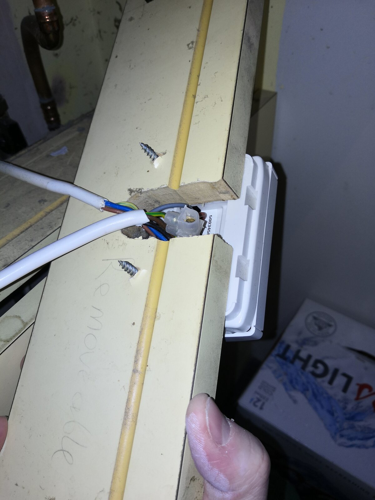 One cable going up into the boiler (assume connected to receiver inside) one going down and routed into the back of a 3Amp plug for power. I assumed I could remove the receiver there and rewire the new one in.