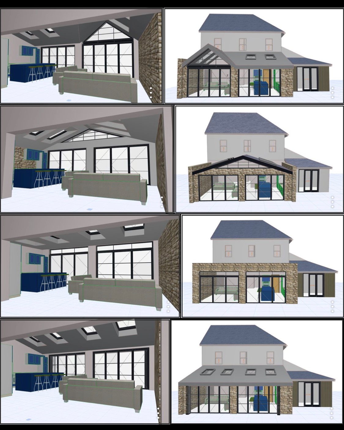The attached image shows internal and external view of the extension with the various different types of roof. Looking for comparison between the following:
