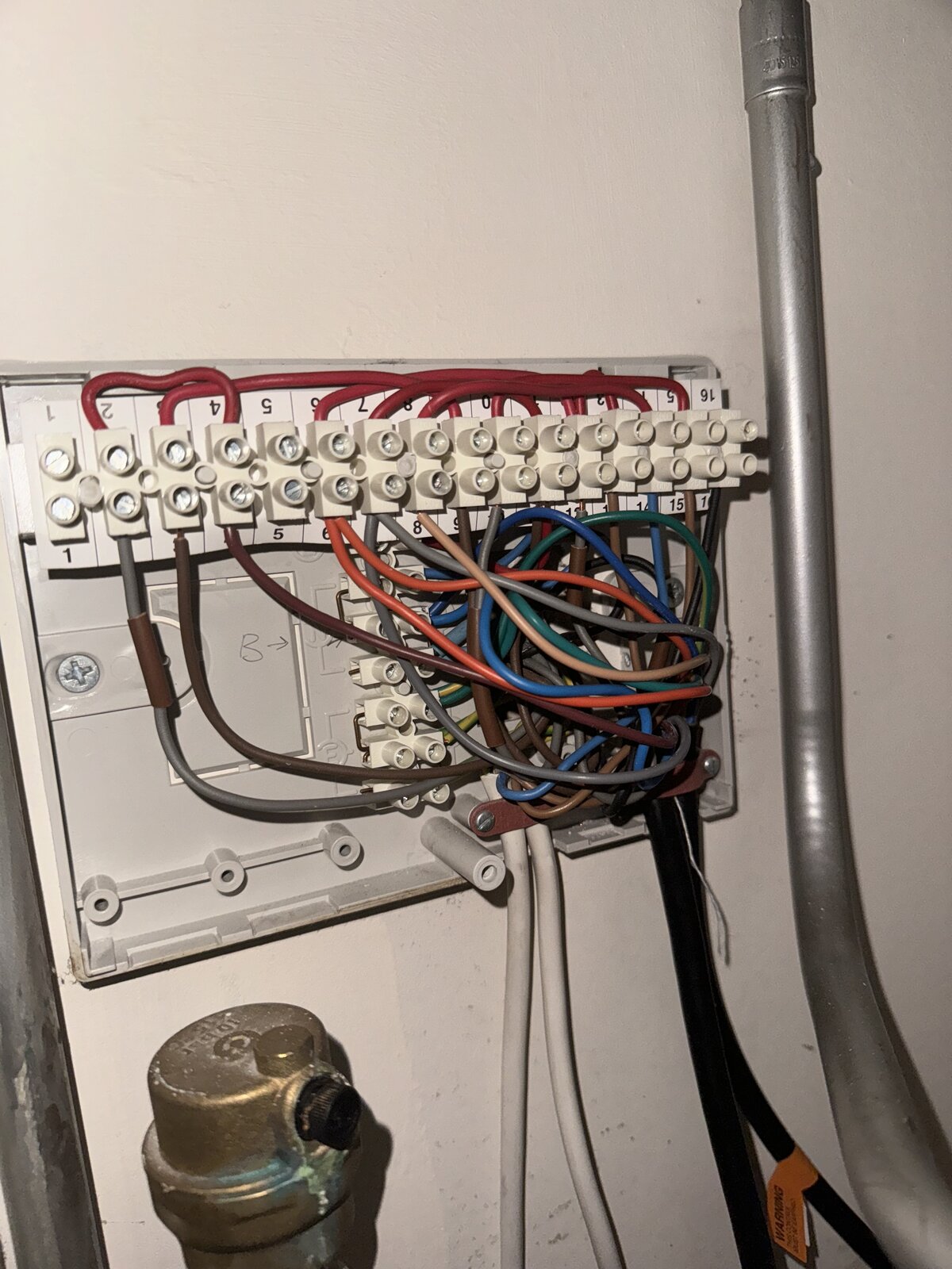 I’ve managed to find which cables are from the thermostat (highlighted in orange) I’ll use these for the 12v nest power.