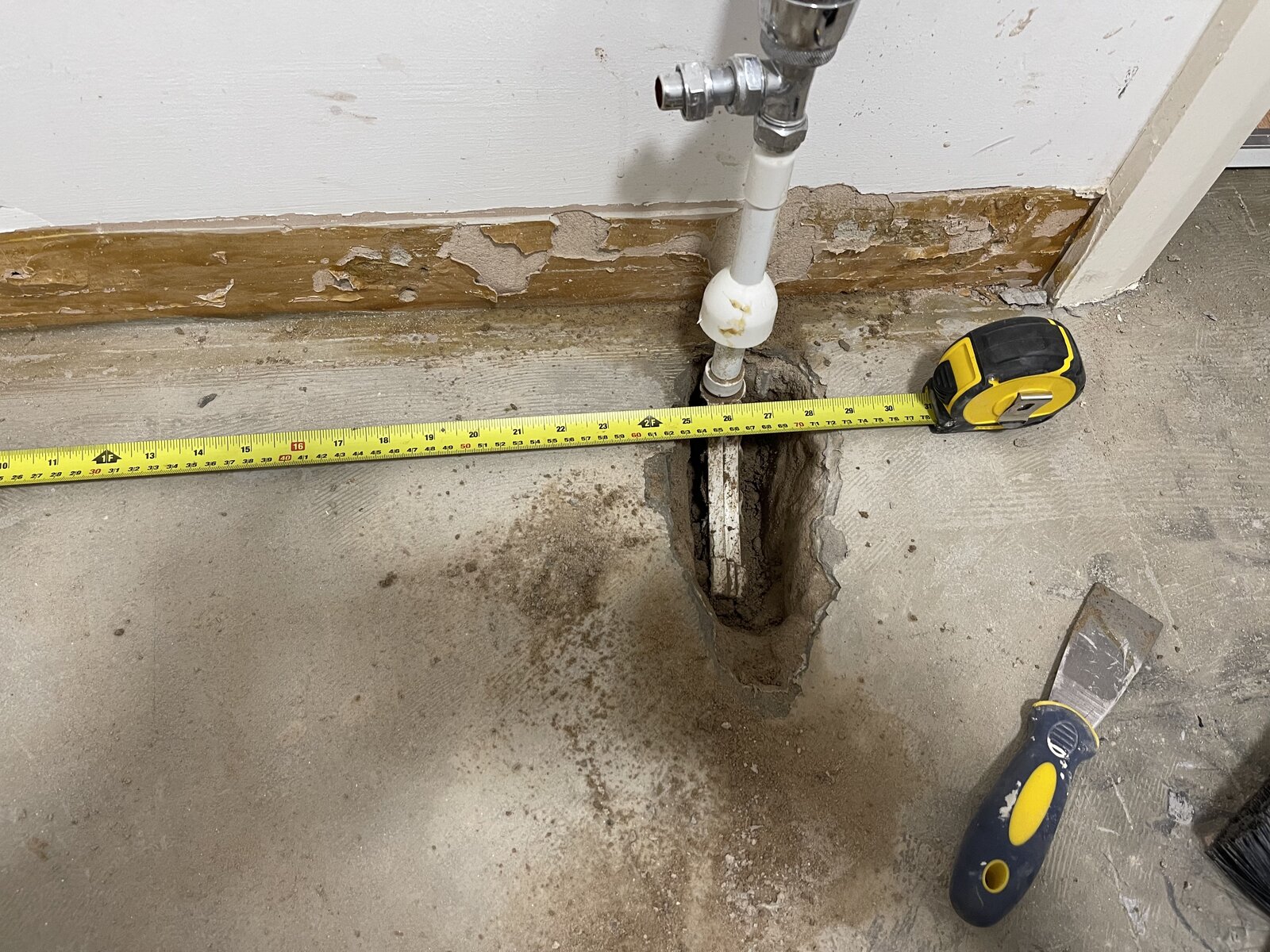 I dug up the floor a little as I needed to narrow the distance between pipes by 45mm to install a new towel rail and straight valves. That went OK but now I need to remove the white collars as the towel rail and valves are black. I have order snap-on black collars and sleeves but I first need to remove these collars.