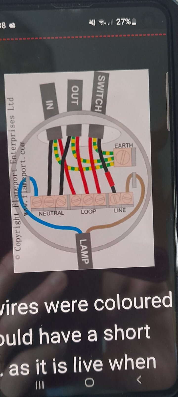 We should have red or brown line, and blue or black neutral, however this is a pain with multi-core cables, as you want to work out which is permanent line and which is switched line, so using twin and earth with brown and blue and over covering the blue with brown sleeve or tape is generally a better idea, same with three core, but these covers often fall off or were never put on, so we need to note what goes where before we dismantle a ceiling rose we need to take notes or mark the wires.