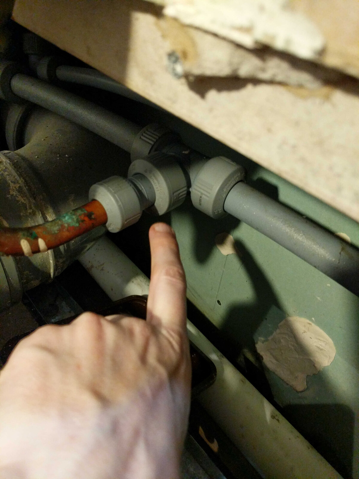 The second is a drip seemingly coming from the unfamiliar large grey connectors behind the wall which I can't seem to adjust.