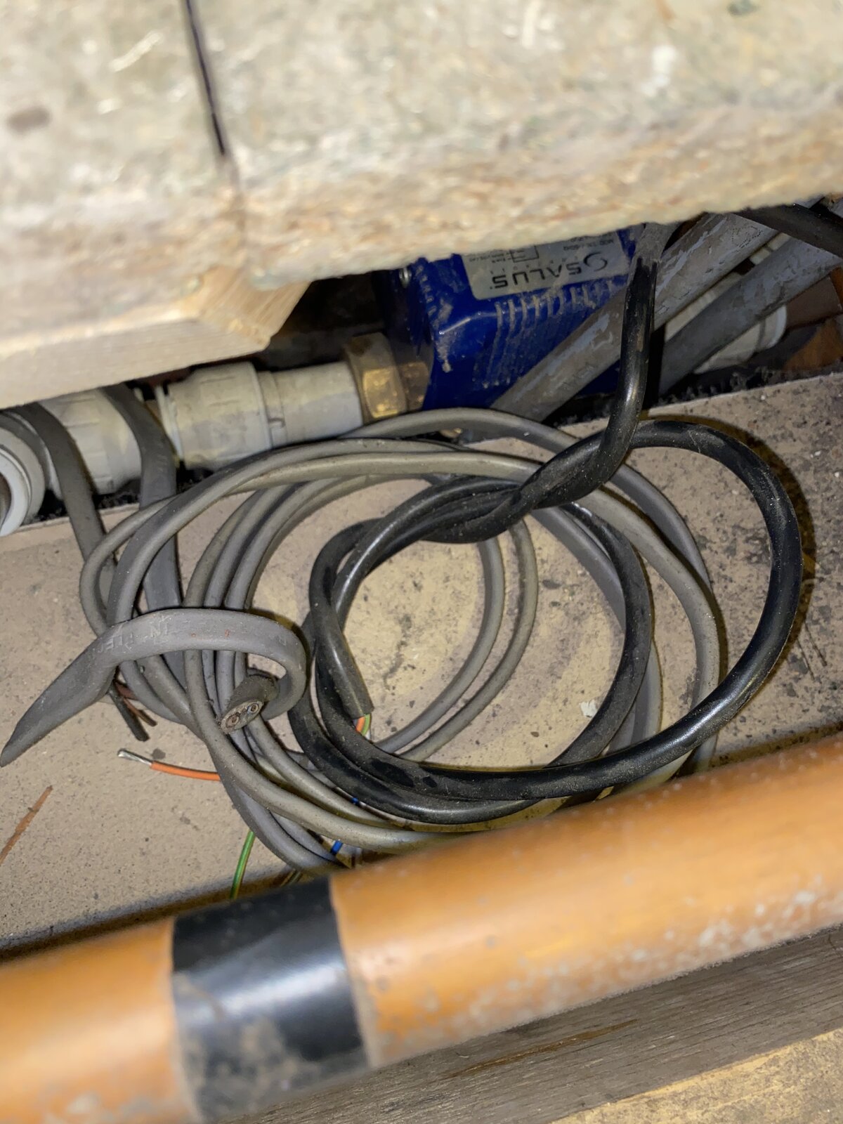 That black coiled up cable seems to have an orange core, so looks like the wires for the motorised valve, you said you heard it ticking, was that simply expansion of the pipes, or the valve moving, as to if when combi fitted pipe work left behind, or if it does some thing don't know, when my dad had new central heating fitted they left loads of the old pipe work in place, not connected to anything.