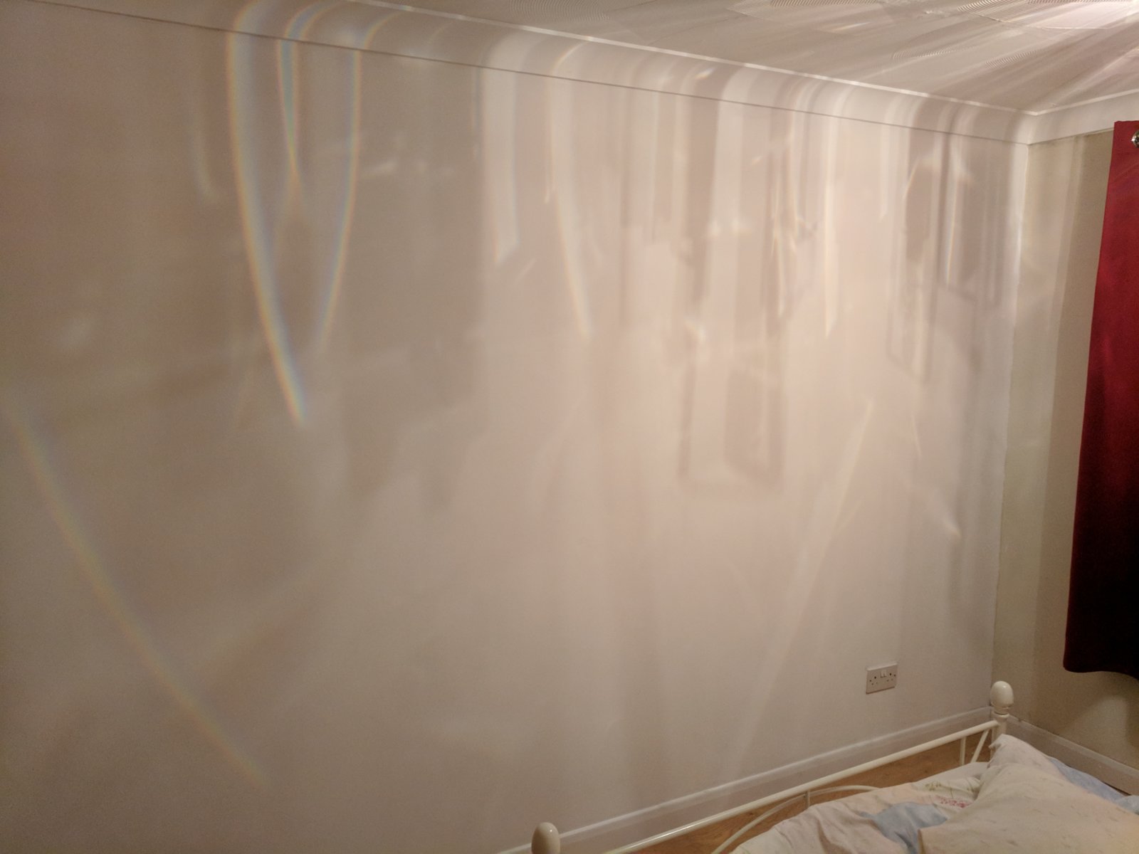 The wall finish is currently not good enough to take the posh paint we bought, but not bad enough to consider getting a plasterer in to fix it.
