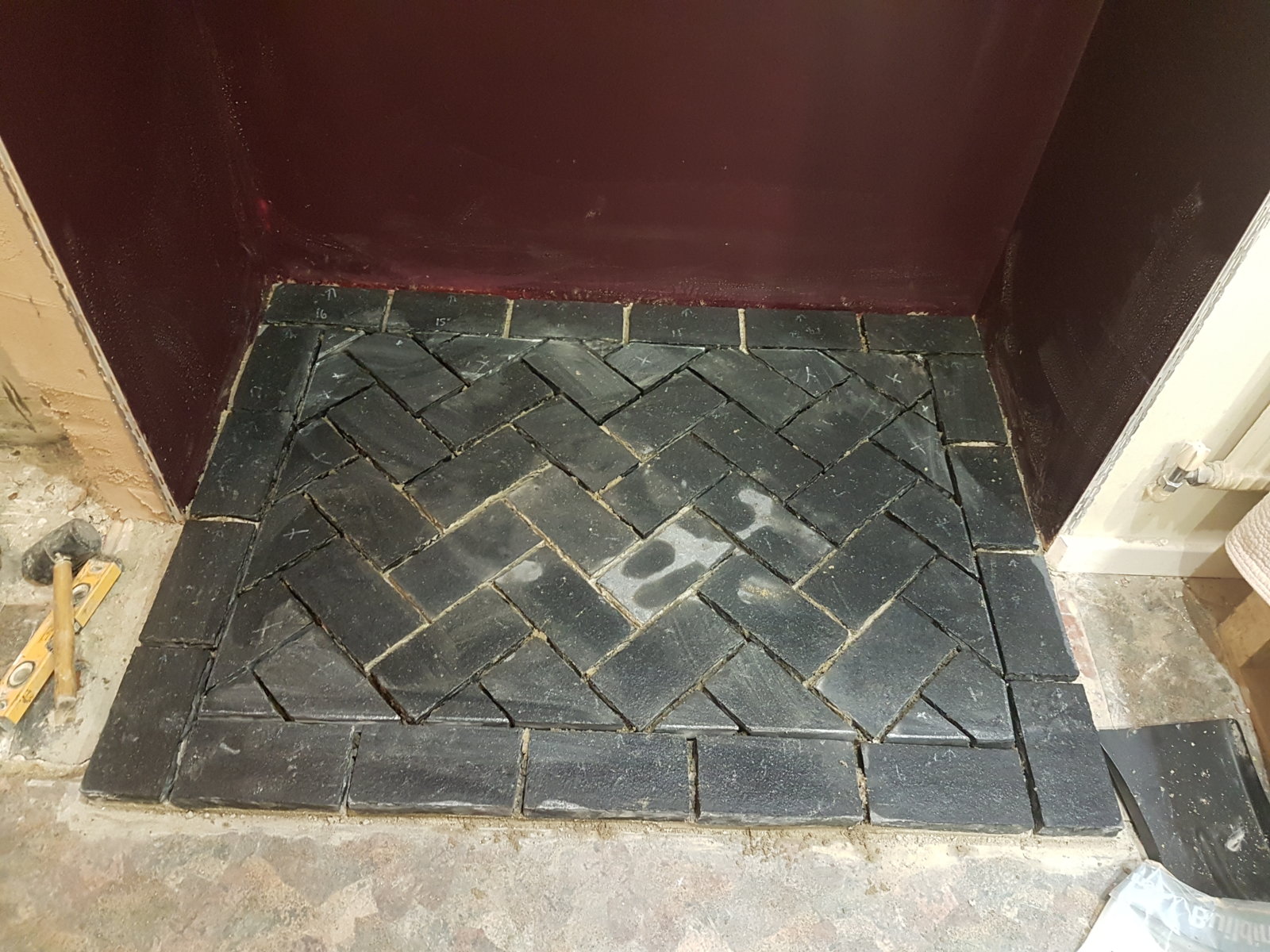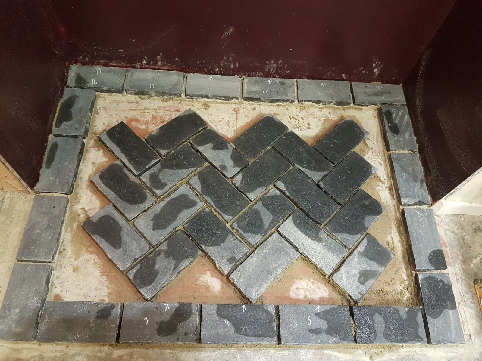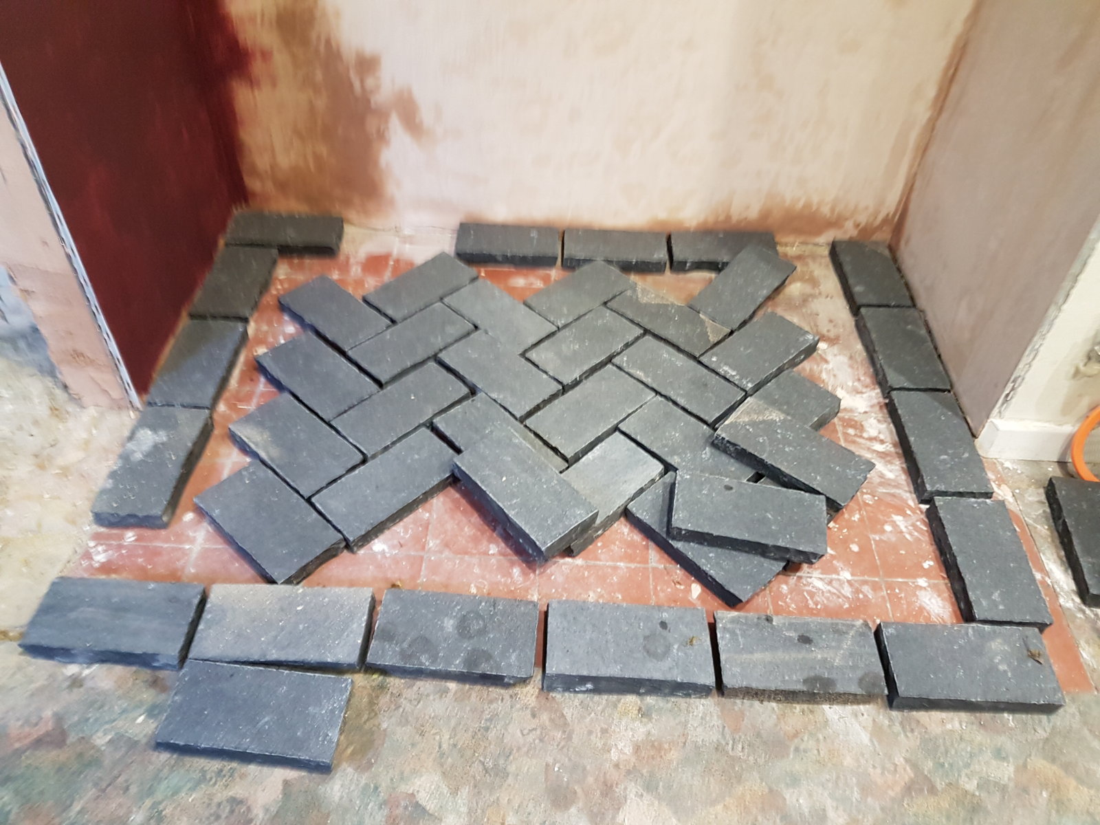 Any tips appreciated here. Going to use 4:1 mix sim consistency to brick laying. Putting in a string line front to rear on center line to square up pattern and place by eye all blocks from middle out. Finish with cuts. Which look fun on them solid looking bricks going to clamp timber to block for my mitre cuts on them as I'm us8ng angle grinder with diamond wheel. Anyway thoughts appreciated!