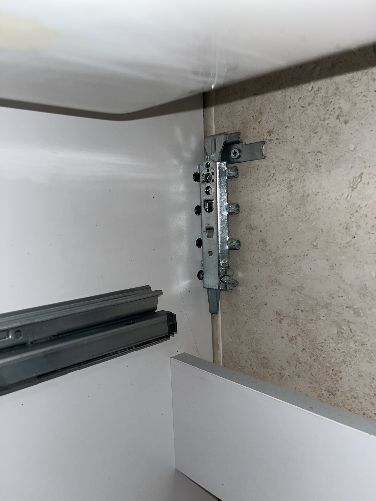 Can anyone help me identify this hinge arrangement on a cantilever basin & cupboard please ?