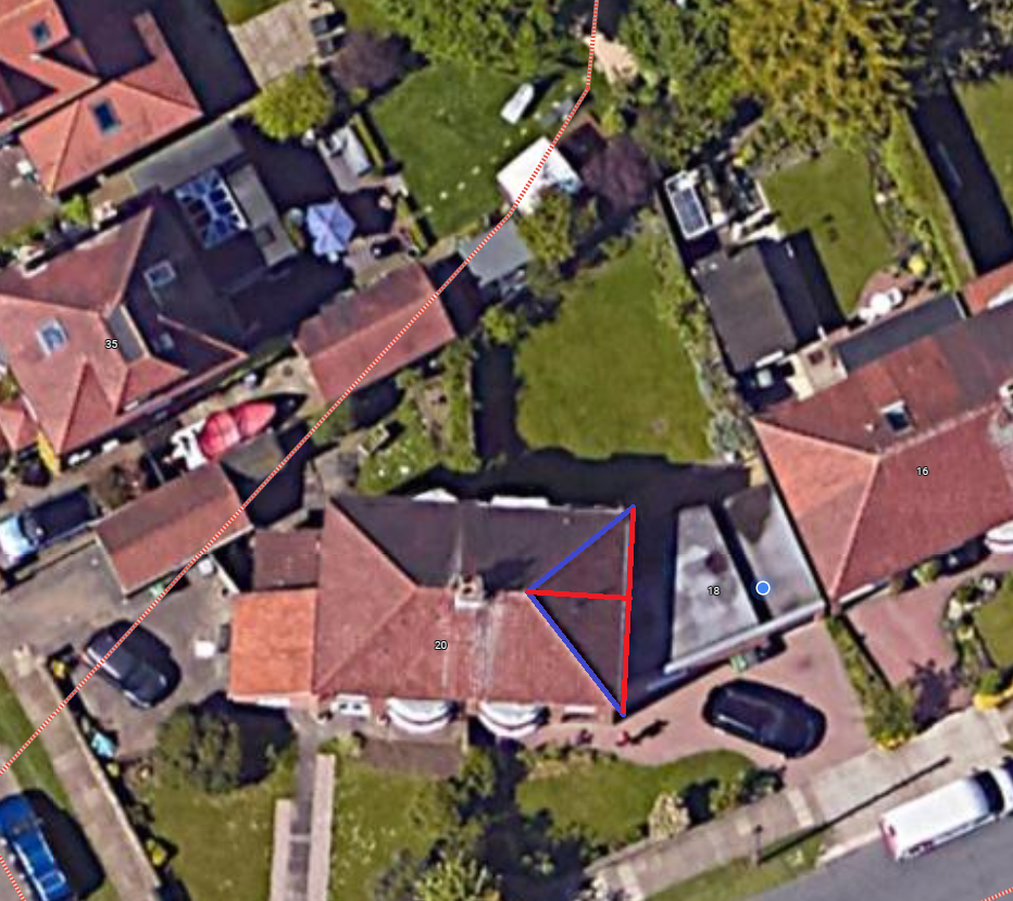 Thinking about a loft conversion, but need it hip to gable to create room for the stairs up. However, house is on a corner plot, angled at c45 degrees, which means i think the hip to gable extension would technically move the top of the roof forward toward the road at the front of our house. See attached picture.