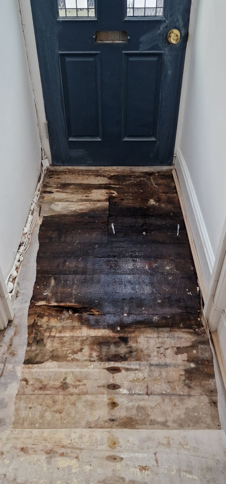 I moved into a house that had a hidden leak. I stopped the leak and replaced the affected floor joists and boards.