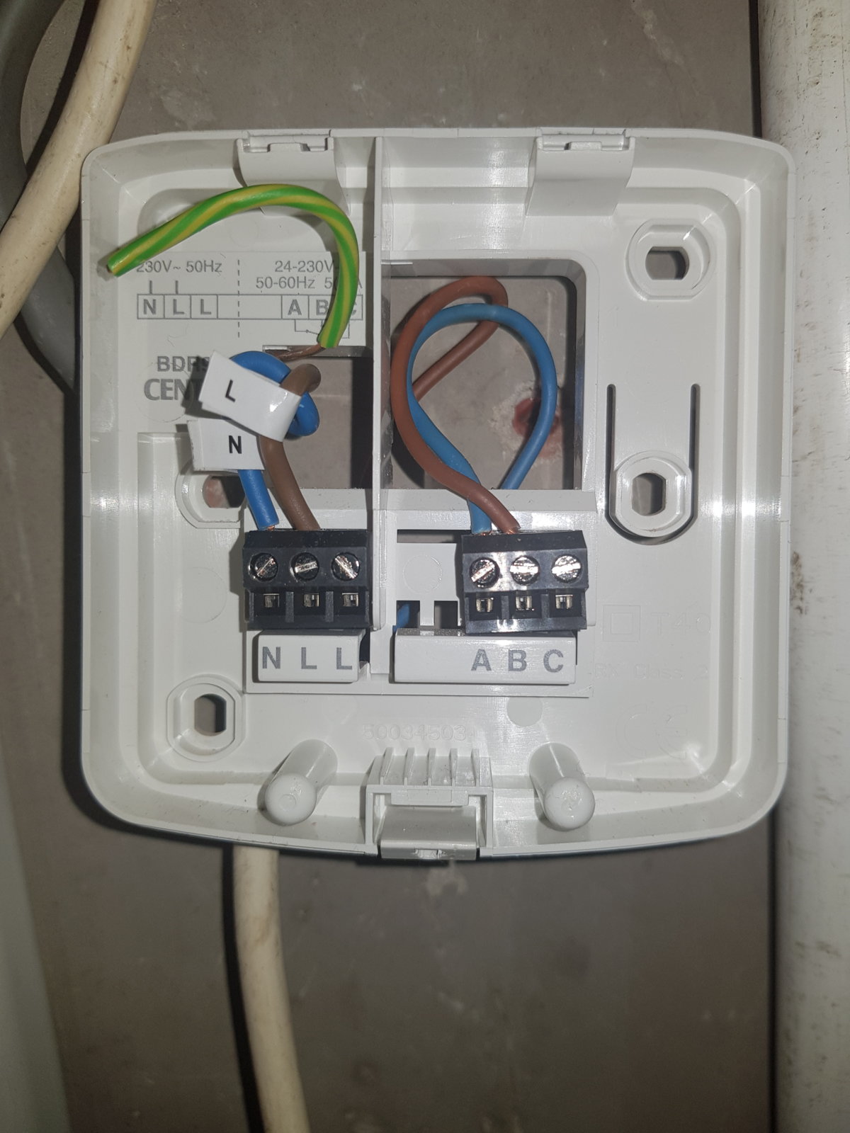 Taking the face plate off the existing receiver reveals 6 connectors with only 4 used. Standard neutral and live, plus A, B, C with only A and B connected.
