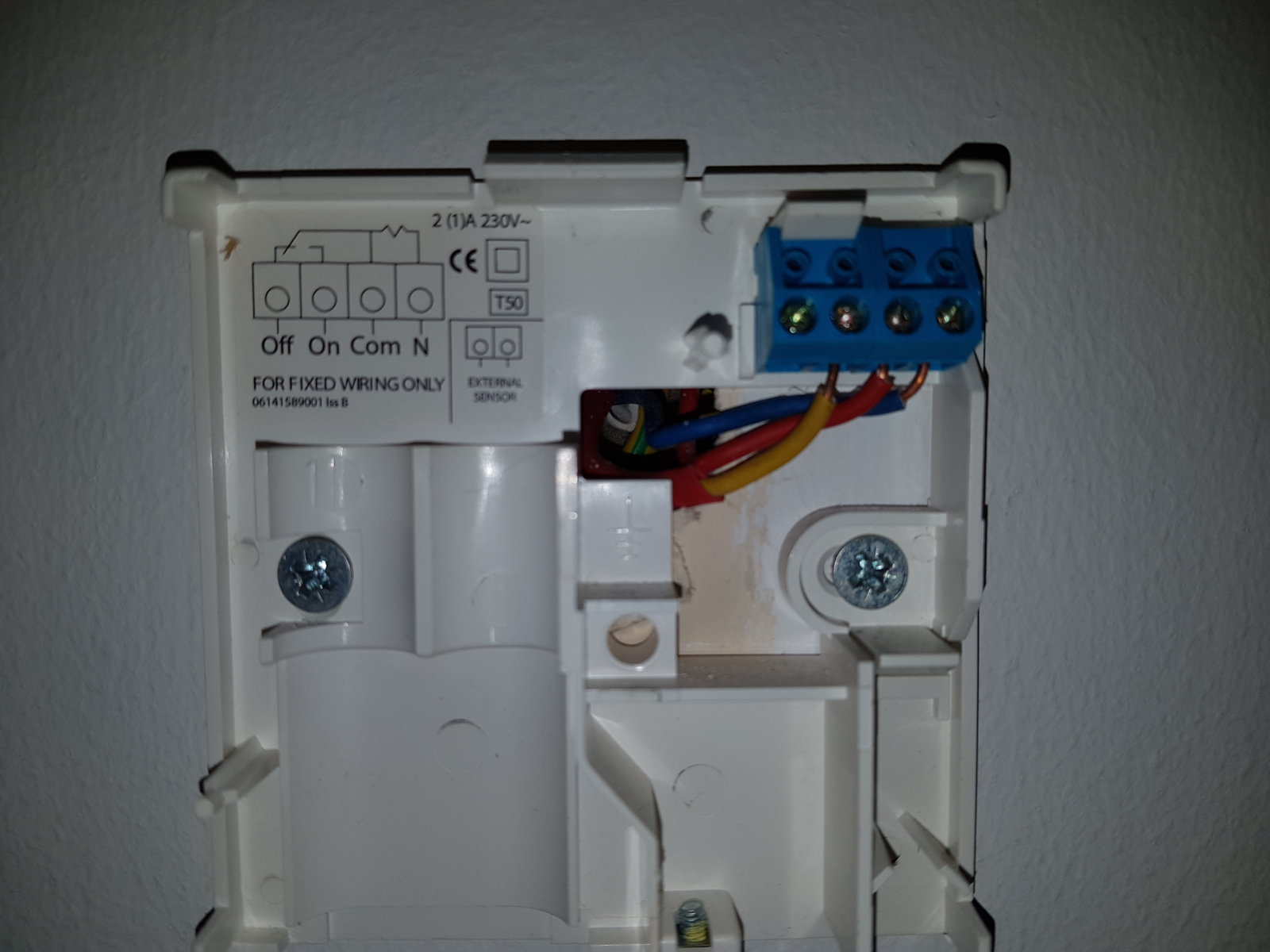My question is i have seen on videos that i need to remove and join the wires from my old room stat. but which wires do i join. i have 4 wire holes (off, on, Com, N) but only 3 used. "On" is a yellow wire, "Com" is a red wire & "N" is a blue wire.