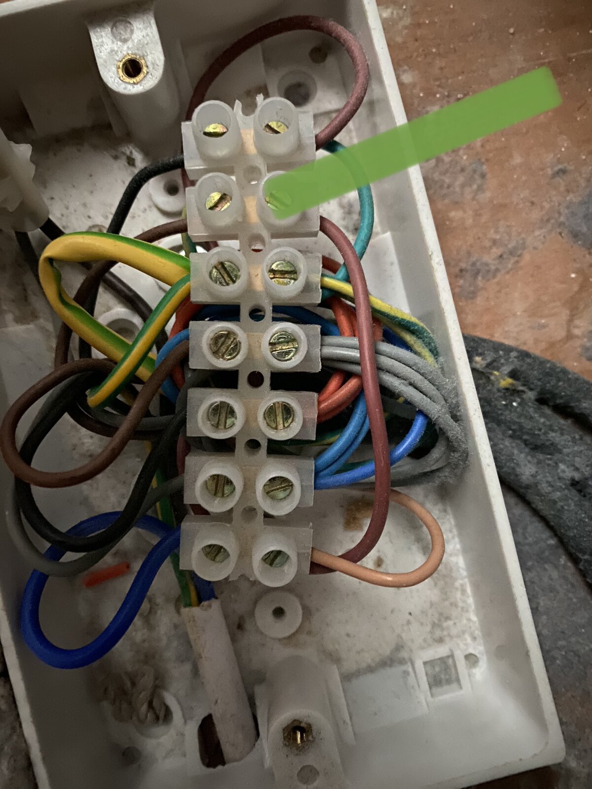 I could leave it, but feel it’s all a bit of a mess. I have a new cable on which I’m only using the brown. I’ve put the unused wires into a piece of block but there is very little room for it all. Would be nice to figure it out and totally stop using the old cable and terminate it neatly. Any suggestions welcome