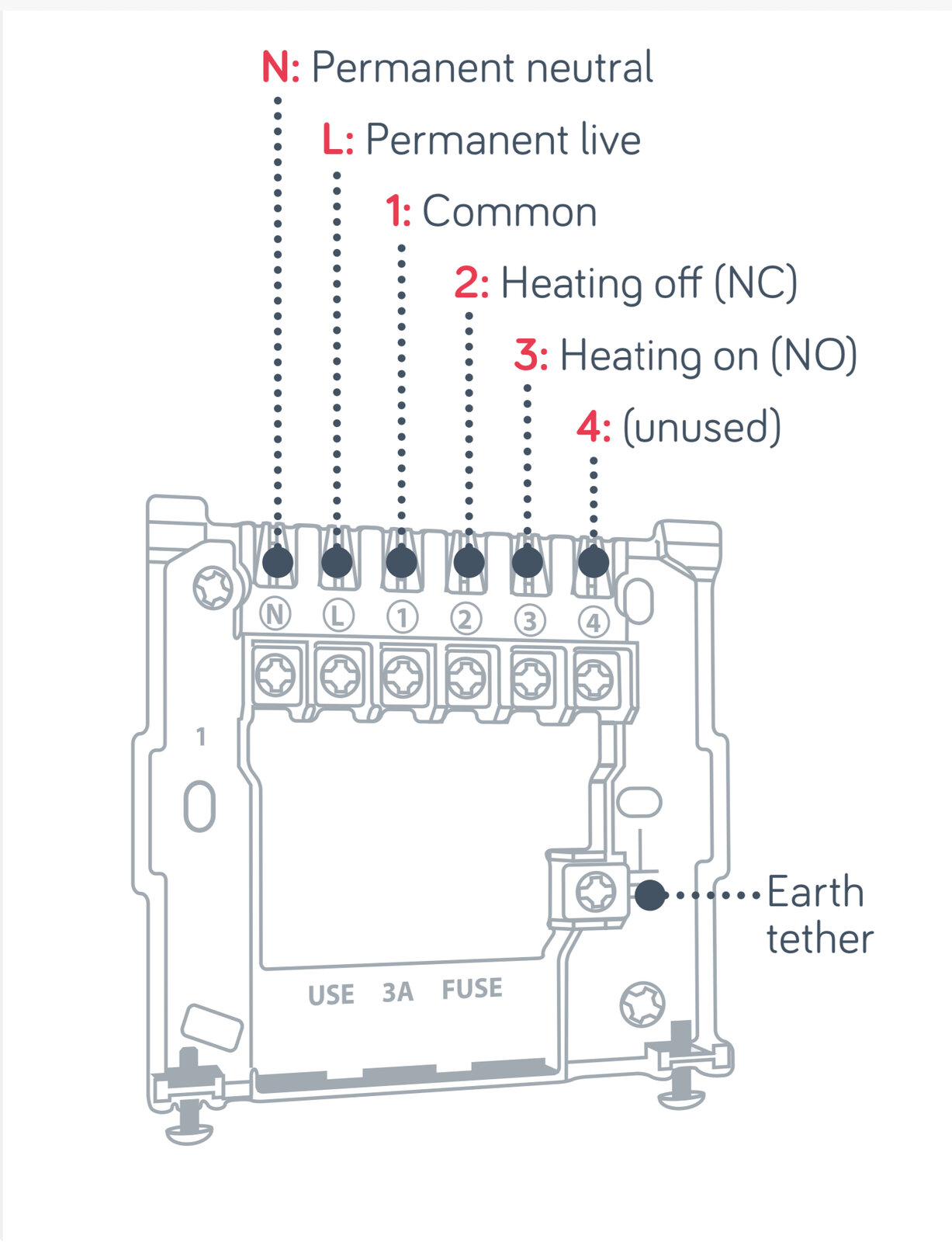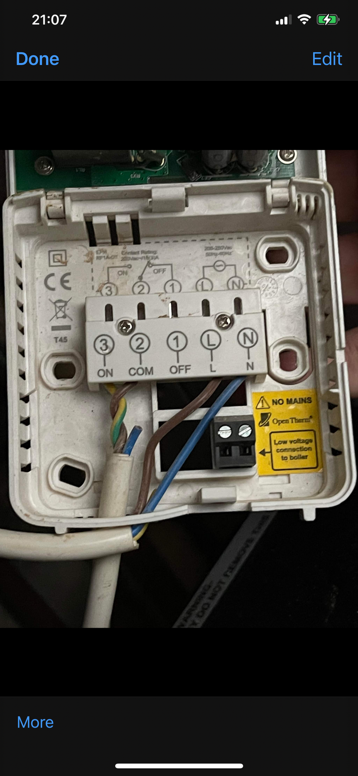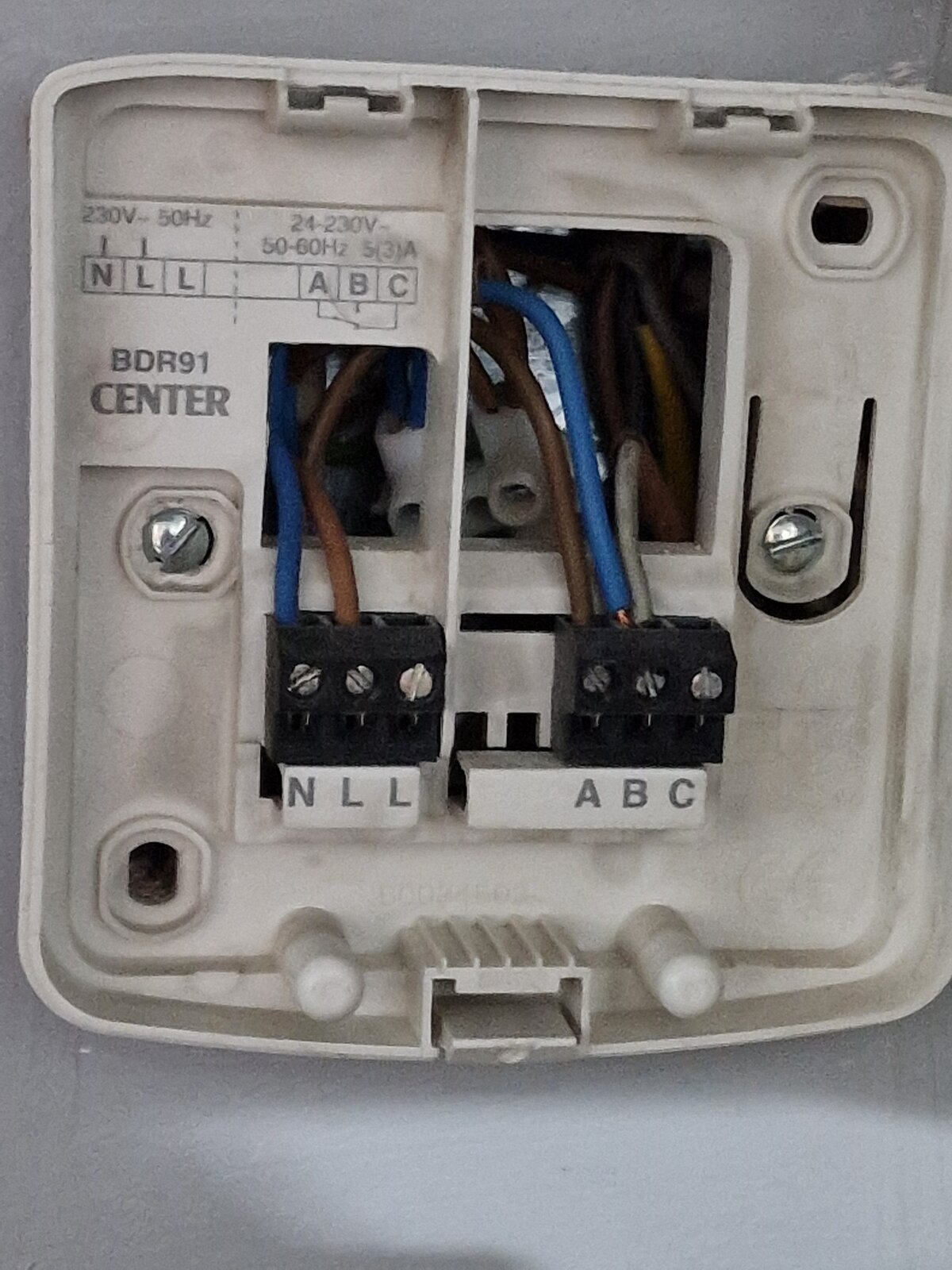 I am wiring in a hive receiver for my Sister on her combi boiler to replace the existing thermostat and receiver. The wiring in the first picture is how it is wired in at the moment. It appears to be wired from the boiler and the fuse switch. Would somebody please advise which terminals to use in picture 2 of the hive terminals if using both 3 core flex.