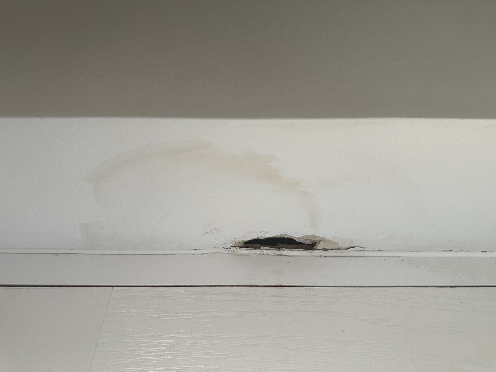 Just wanting some advice on potential sources and remedies for water ingress that has caused a hole in the plaster above our front door.