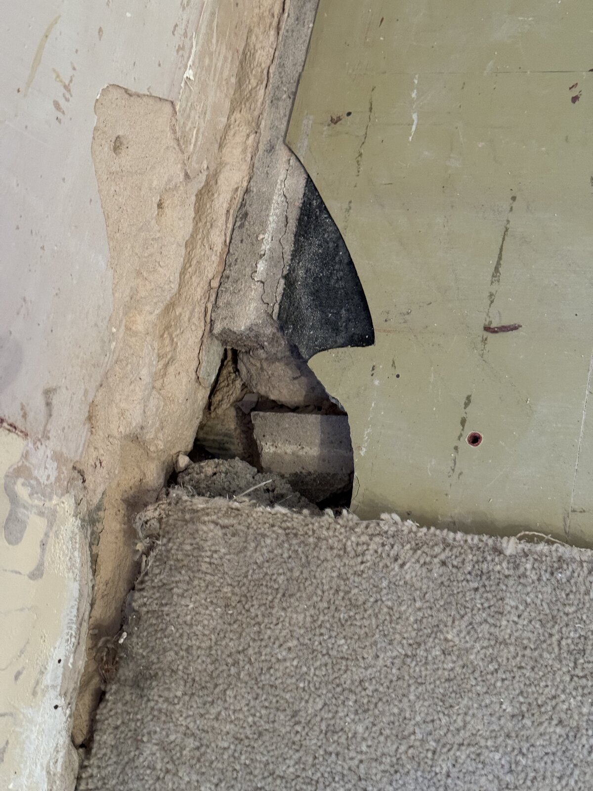 As I’ve removed it, it’s exposed old vinyl tiles and where I’ve removed the skirting from the wall closest to the wardrobe, there’s a hole in the concrete floor. I’ve attached a photo. I can add a clearer on when I get home.