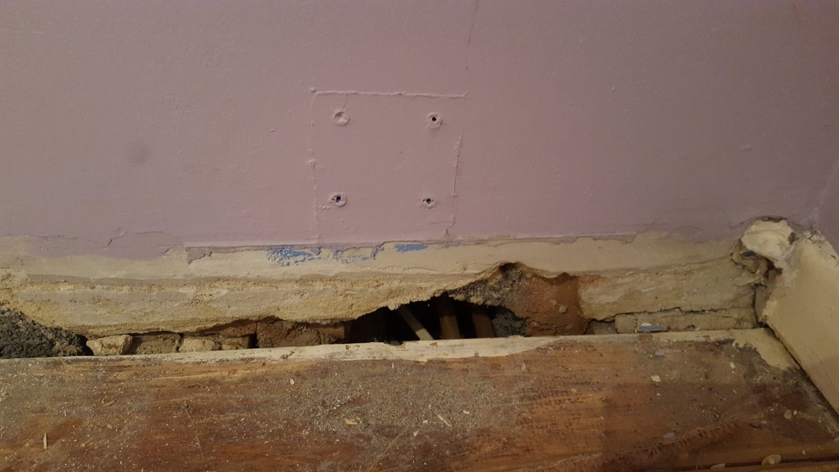 I've removed a fitted wardrobe and discovered the skirting board is missing and the wall has large holes in it. The floor boards only run up to where the skirting boards should be, plus the underfloor pipes are exposed. That's probably as clear as mud so I've attached a photo!