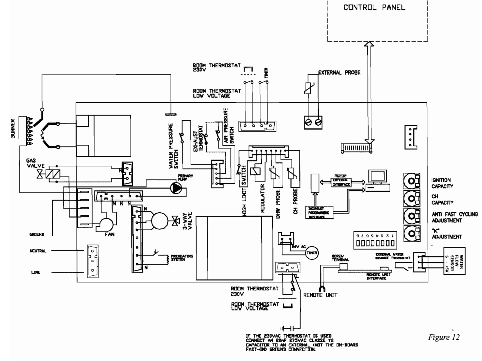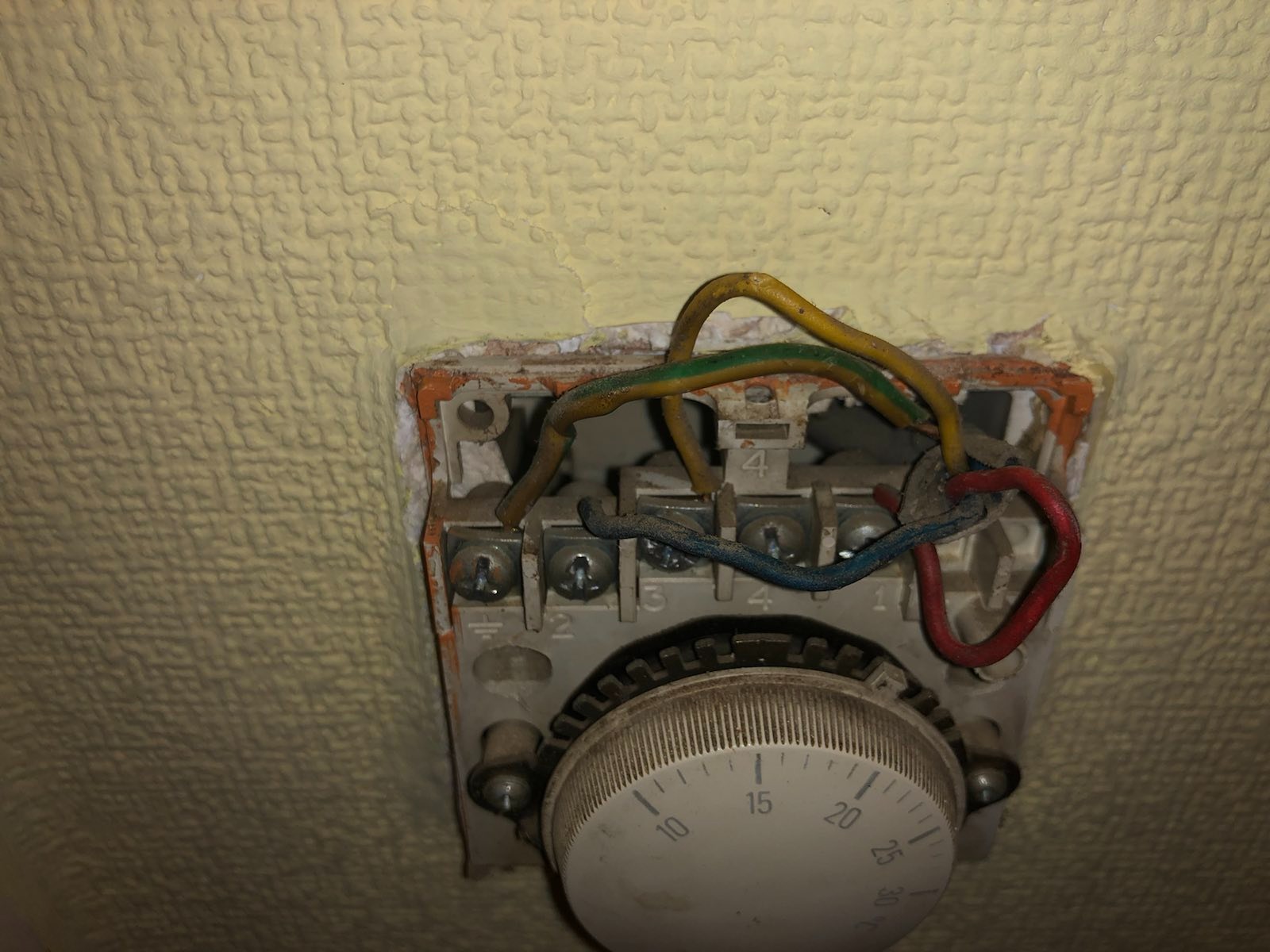 The Heatline is set to use low voltage for thermostat (the 230v thermo connector is jumped) and I can see the two 'switch wires' exiting from the 24v thermo connector but lose sight of them as they disappear behind tiling with the mains supply (there's an isolation switch as few feet away). Across the house at the Honeywell there's a four core cable live/neutral/yellow/bare earth - which is wired to terminals 1/2/3 & earth.