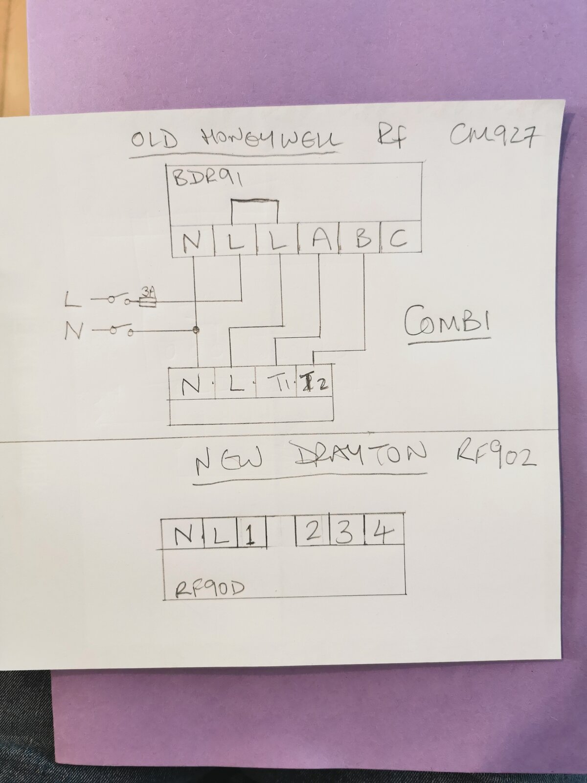 The neutral live live wiring of the Honeywell system does not correspond to the new Drayton system,can you offer me a wiring solution please?