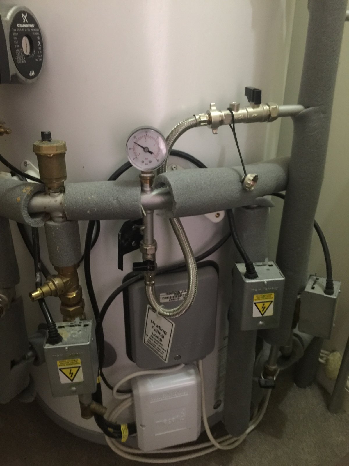 Here is the unvented setup in airing cupboard upstairs and in second picture you can see a brass blanking plug (I think) - is this where I could locate the sensor for the water probe?