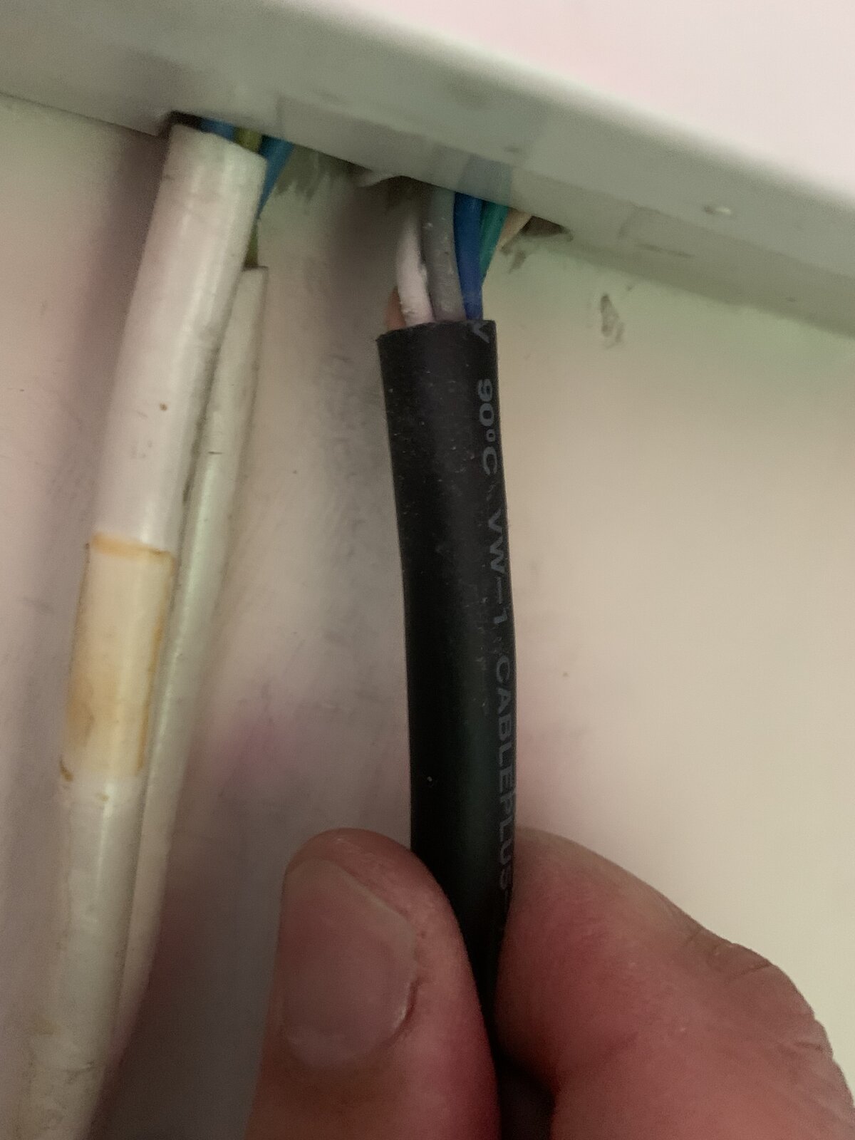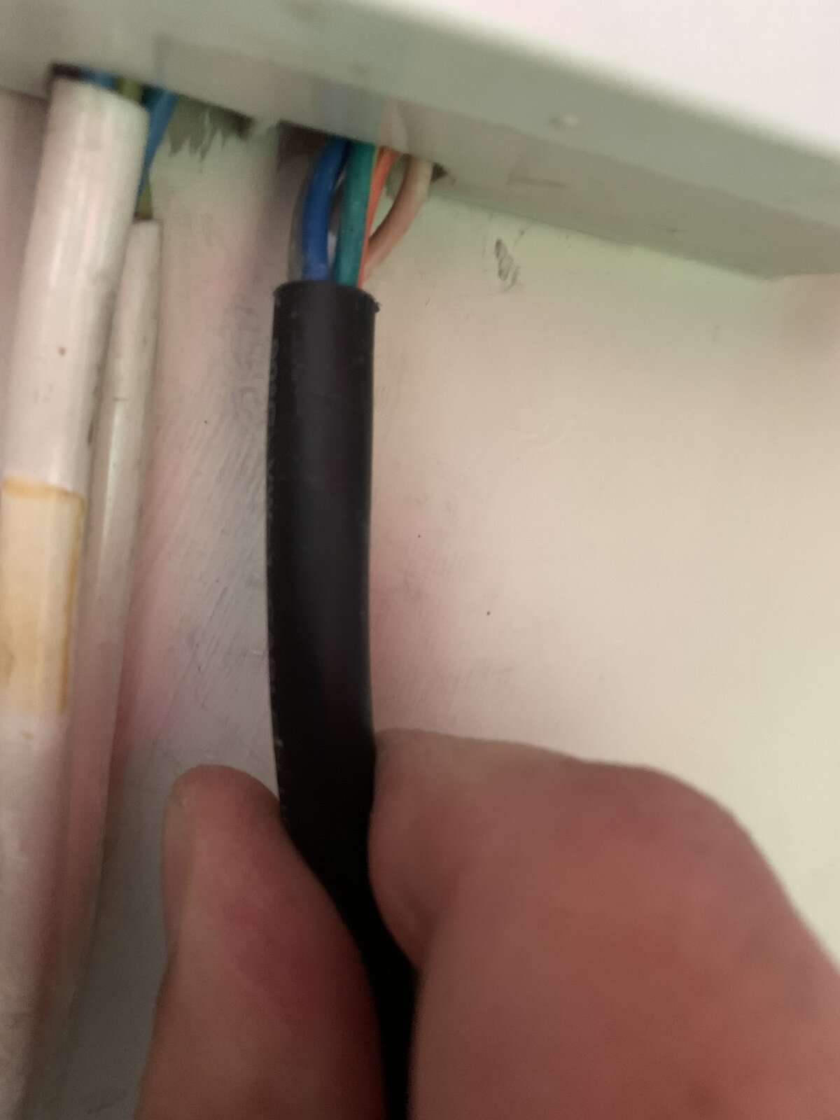 The grey wire is coming from the boiler that was wrapped around the red/orange wire into the terminal block and the yellow wires were paired together too