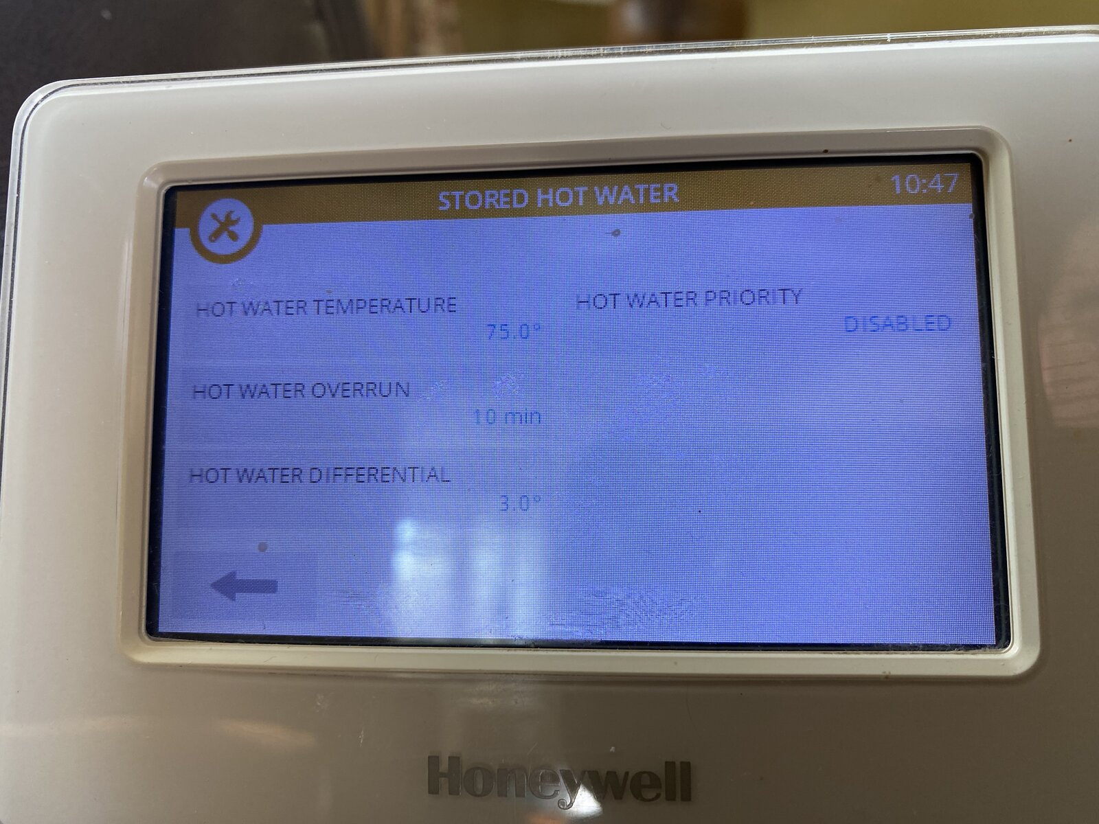 The settings on the Honeywell controller (see pic)