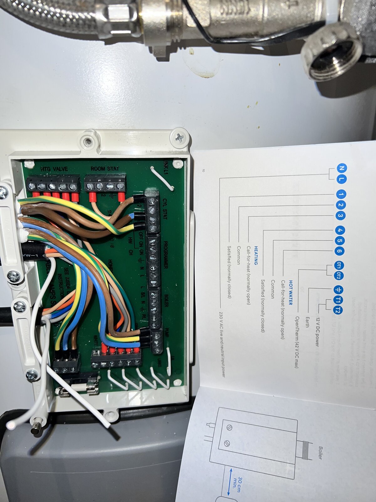 The Heat link is wired to the wiring centre programmer terminals. The terminology is slightly different, but it's no too difficult to work out.