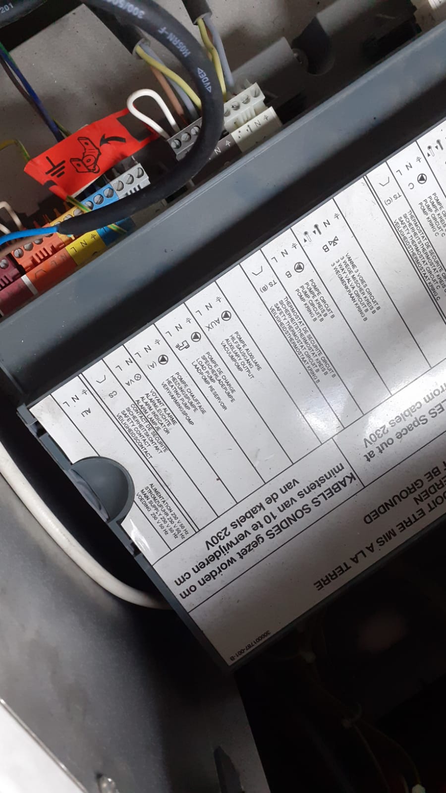Struggling to determine where the connection from the Honeywell controller relay should connect to the boiler. Below is the wiring diagram from the Honeywell controller and below it the boiler electrical panel. It was fitted but inadvertently removed …