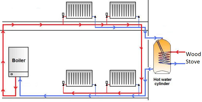 You'll also need a heatloss rad on the primary pipework from the woodburner.