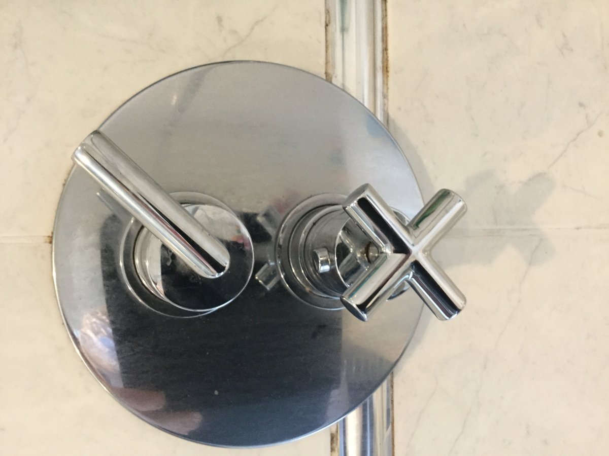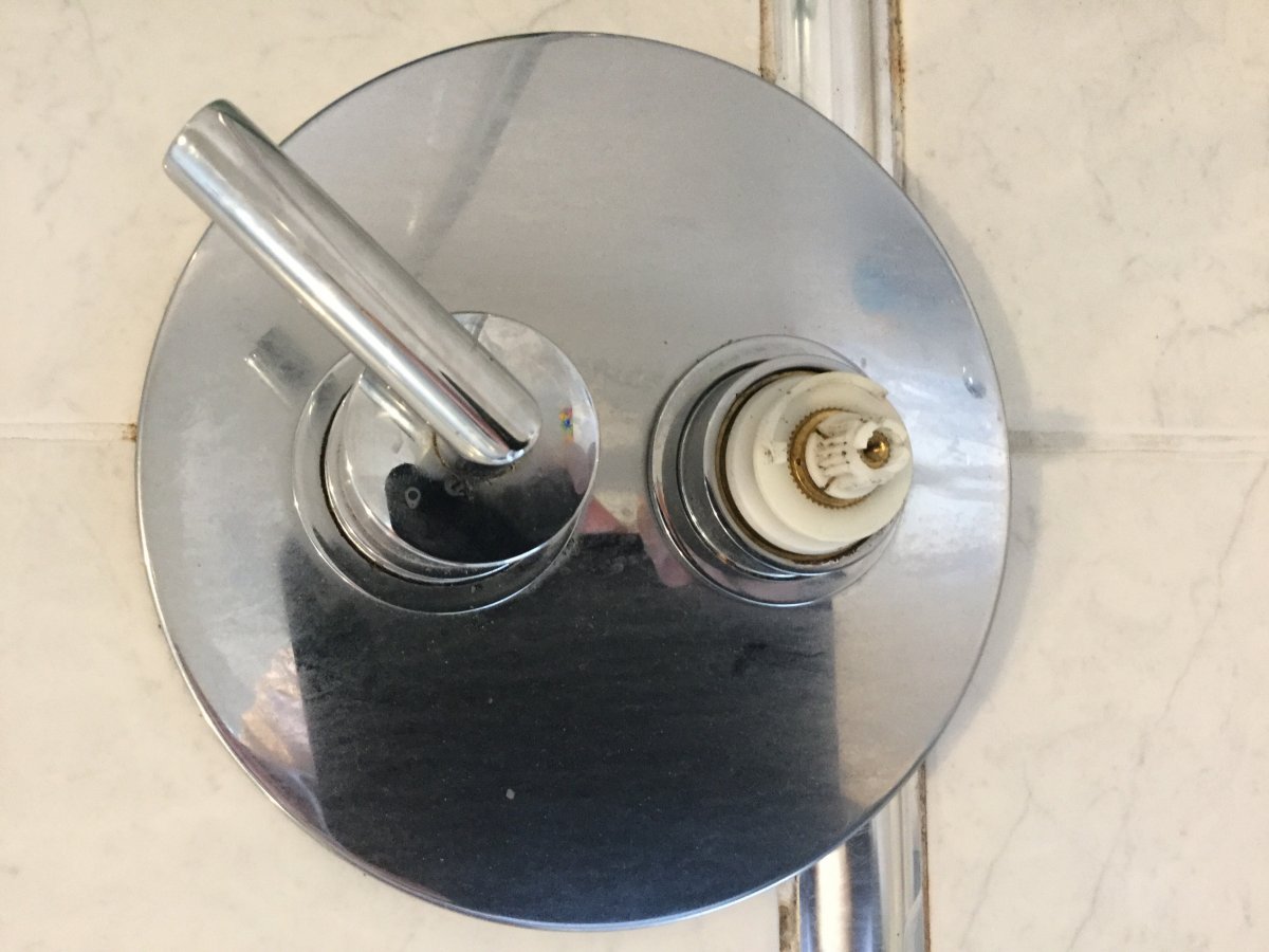 If you've moved the white plastic cam, you'll have to re-calibrate the shower. Take off knob and cam, run shower and with knob loosely replaced, set temperature to 38 (or whatever is comfortable), refit the cam so that the knob, when fitted as above, points to whatever marking (red dot or similar) is on the body. Then refit as above without disturbing the cam.
