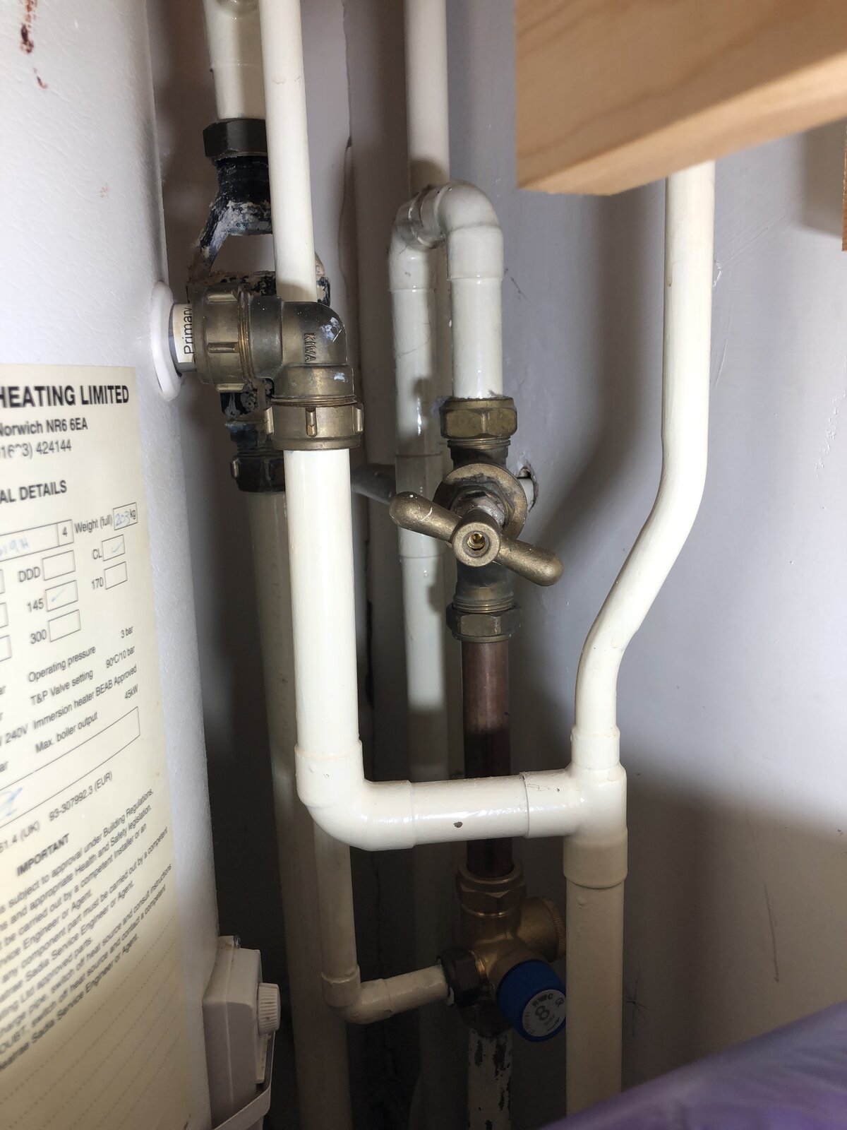 Can you take a picture of where the cold mains stop tap/valve into the unvented is? It should have a valve similar to the new one shown in pic one and two, beside it.