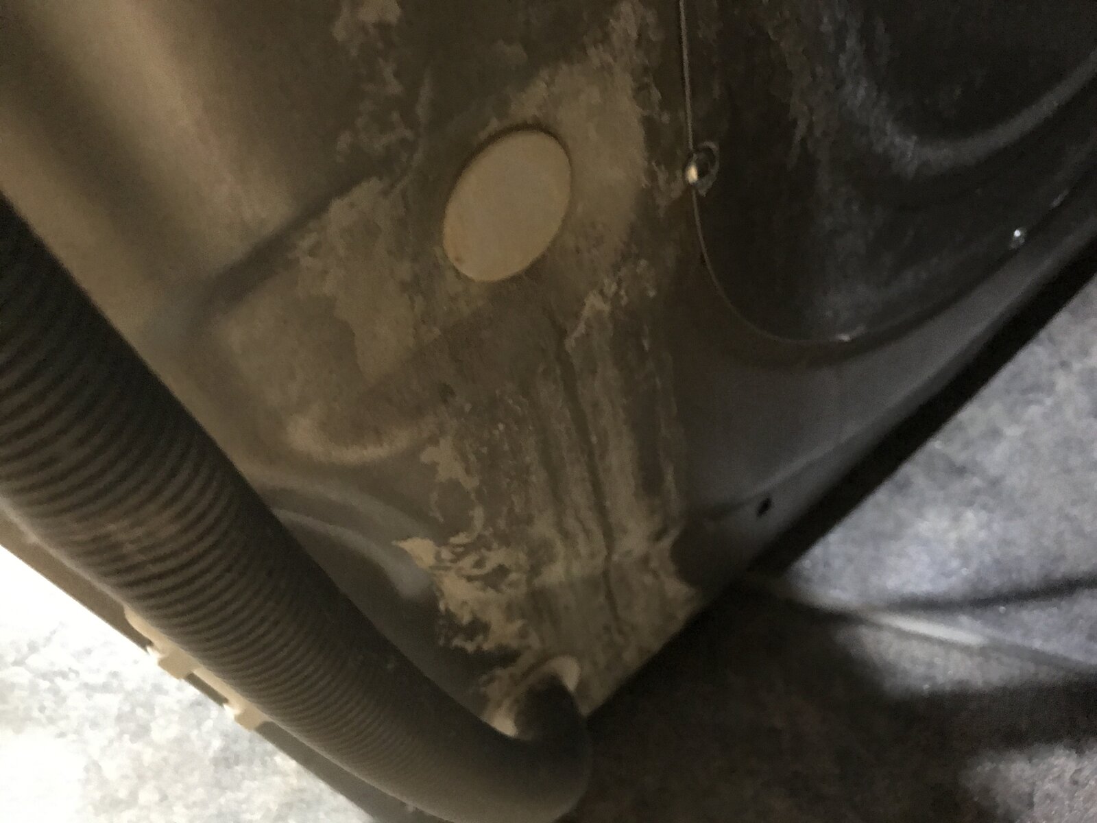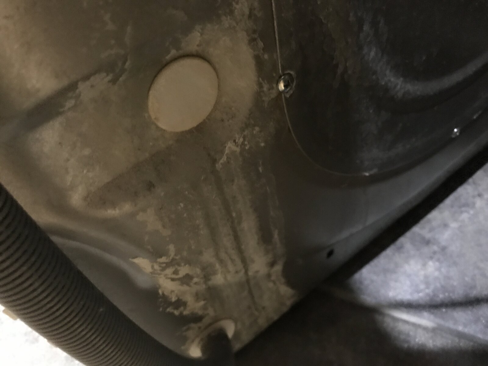My hotpoint washing machine isnt draining. No funny noises. Undid pump on front kick panel and not blocked there, no water came out. Lower the hose to floor and no water cones out. Any ideas? I did notice a fair bit of limescale on back. There is a small circular disc where i have limescale down to the hose?