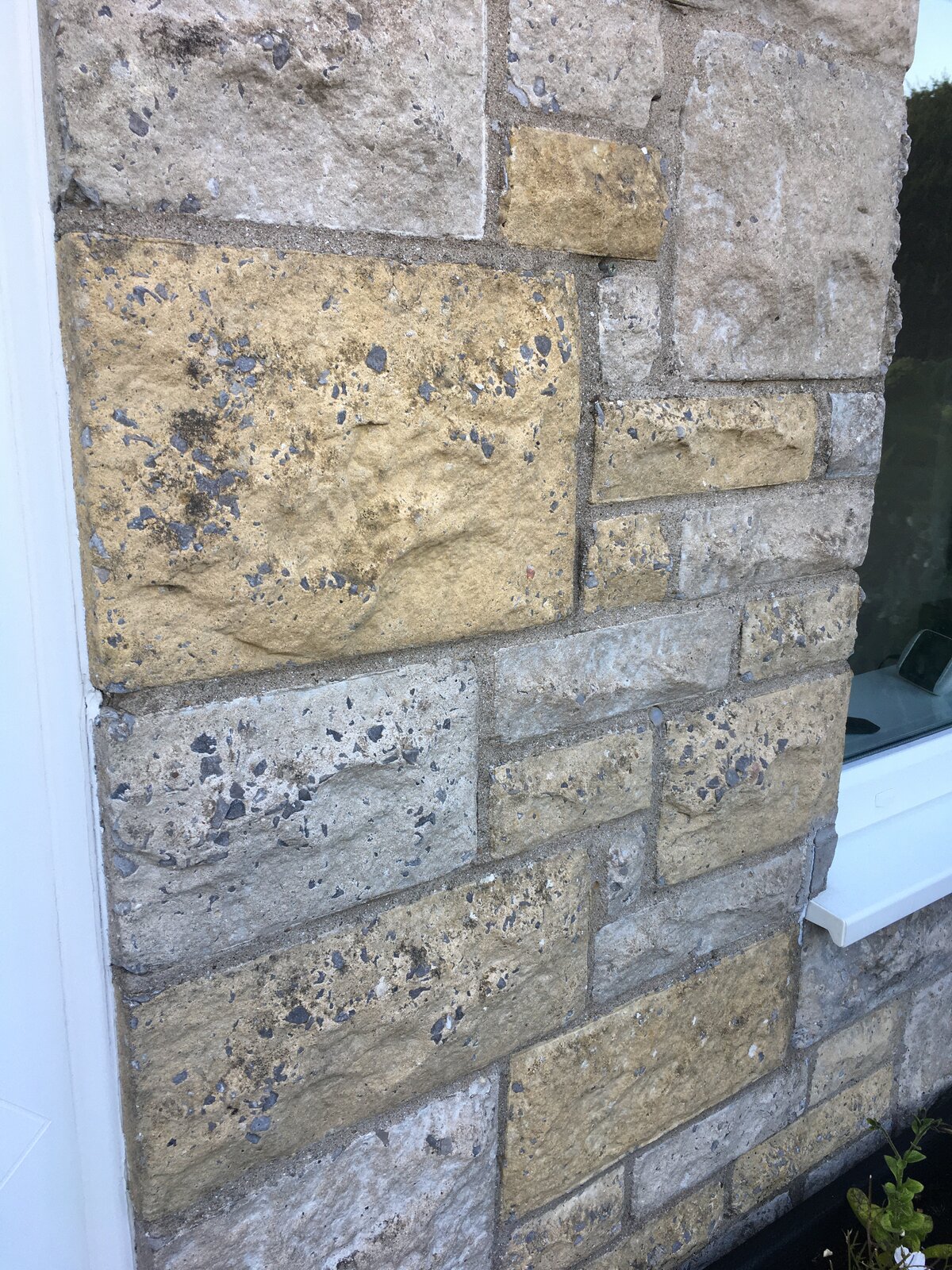 The house has pebbledash on other parts of the house, but this stone front at the front window.