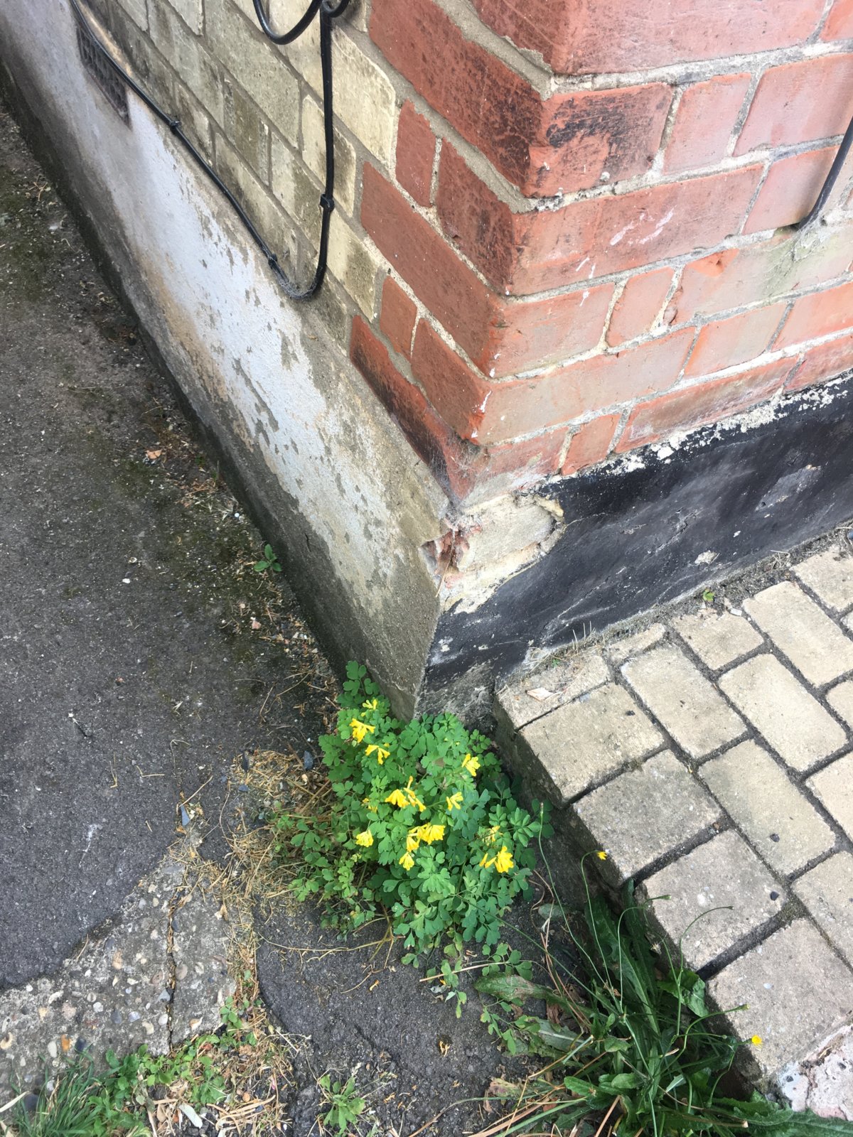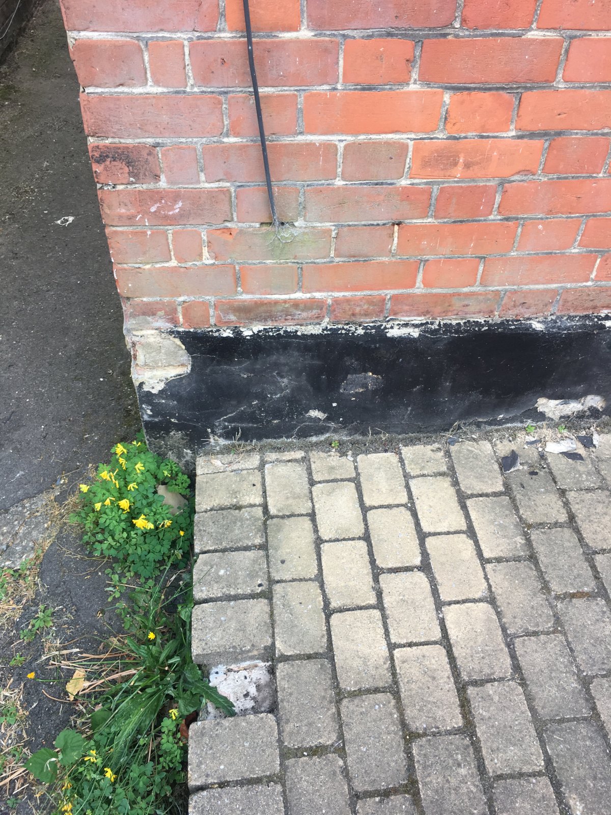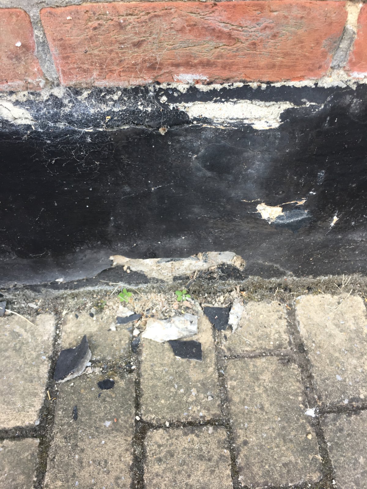 Hi guys, moved into a end of terrace two bed house last year and after sorting out the inside decor am making a start on the outside of the property. The house has a concrete/rendered plinth running around the bottom all the way round and is painted black at the front and back. The plinth is starting to crumble off of the wall at the front an is exposing the brick behind it (see pictures). It has also swollen out in places an sounds hollow if you tap it.