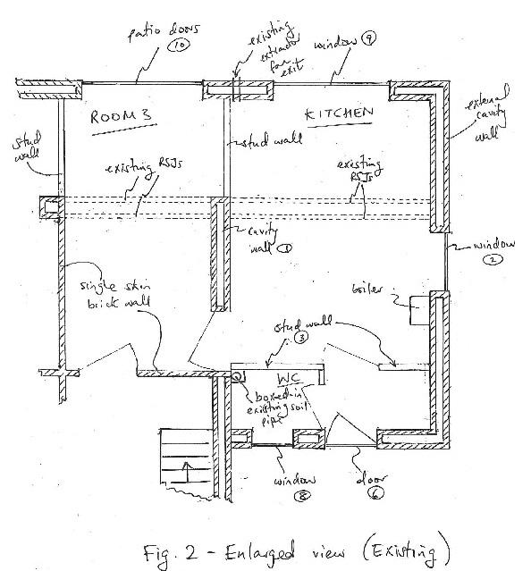 1. If i visualise your sketches correctly, you will be doing a "double knock-thro" ie. knocking thro where it was opened-up before.