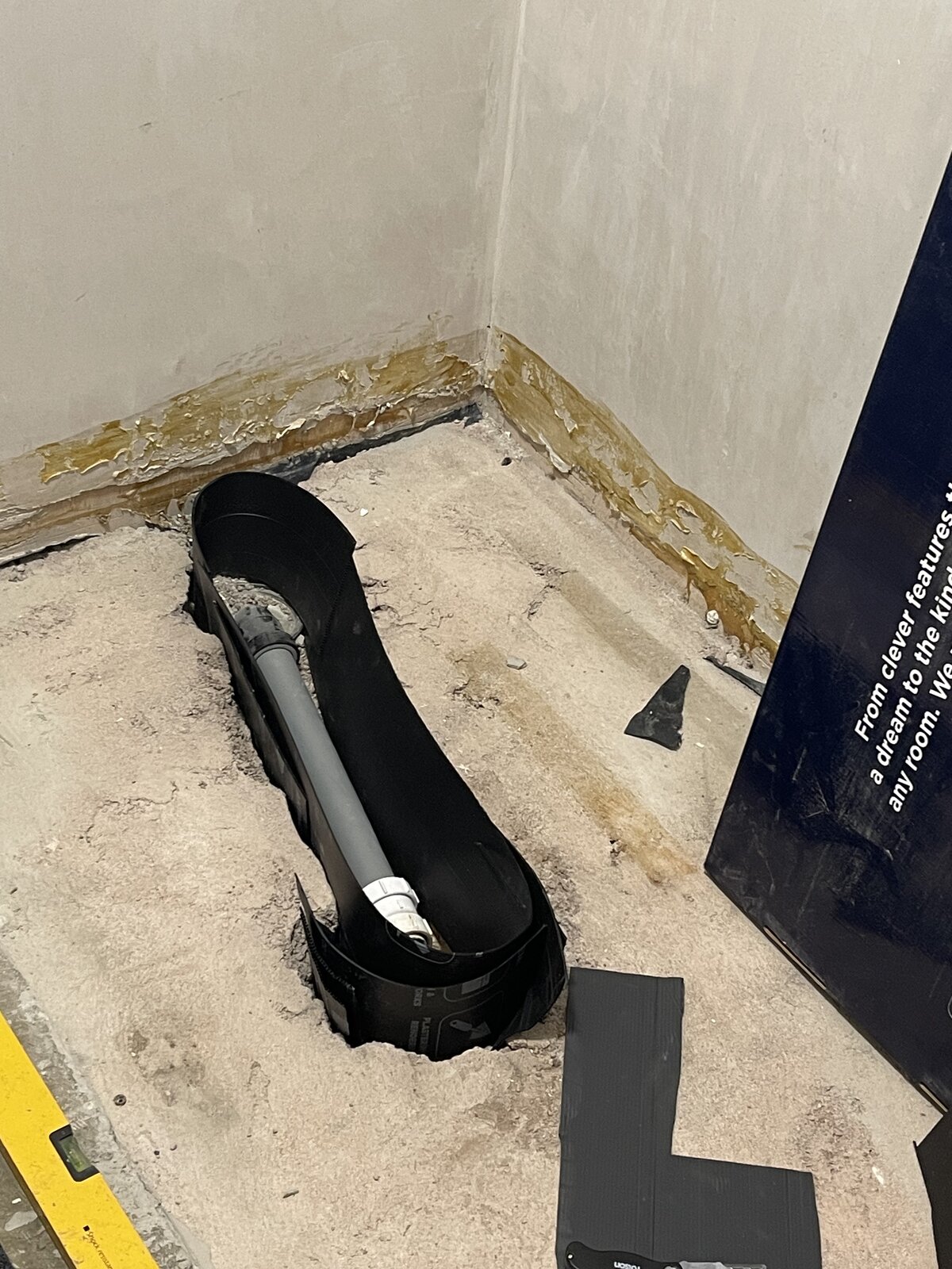 In the process of installing a shower tray and the floor needs levelled where the tray will be going but as the floor is divided by the waste flow that needs to stay, how do I make sure both sides are level with each other? All ideas welcome. Thanks.