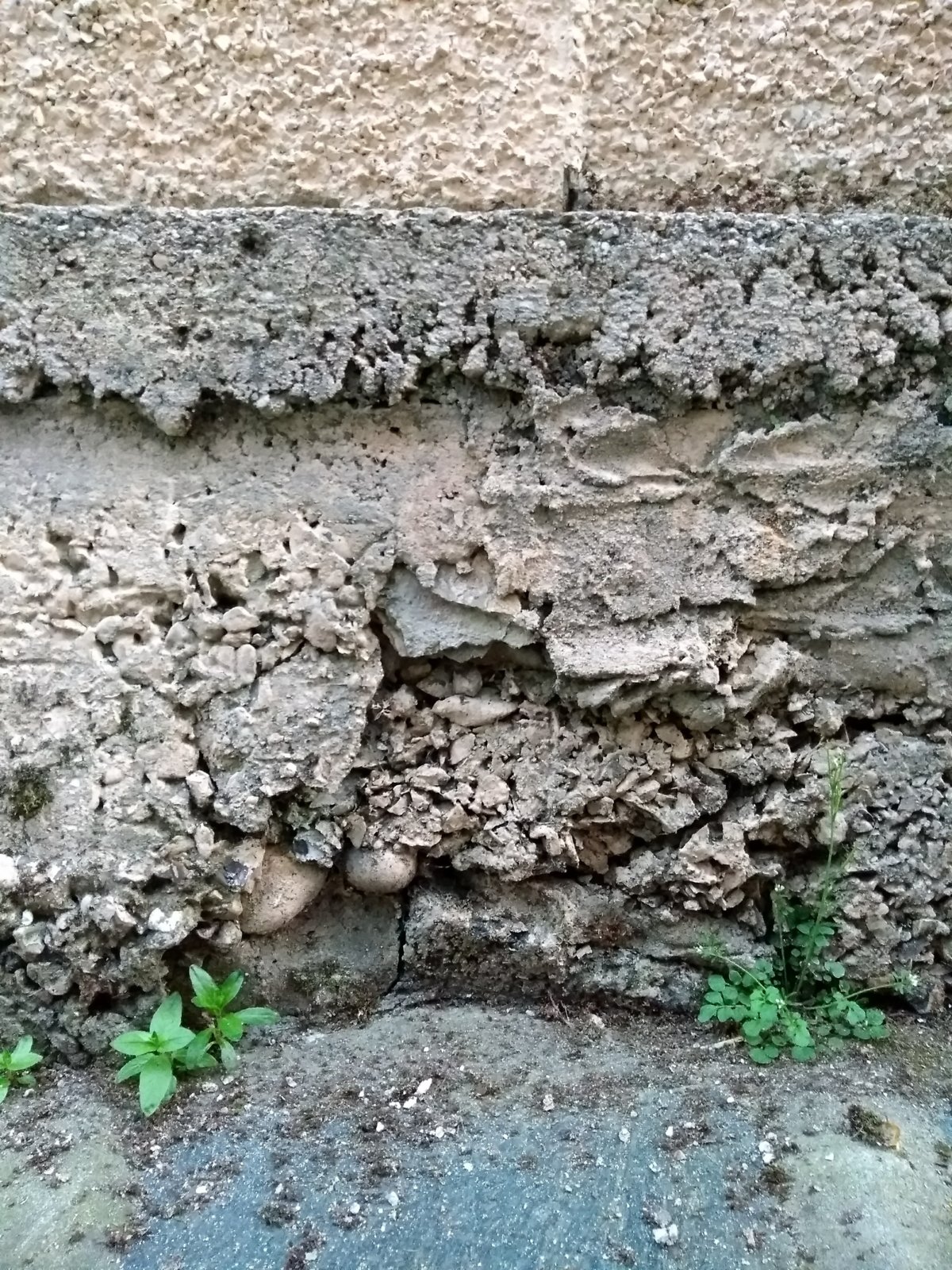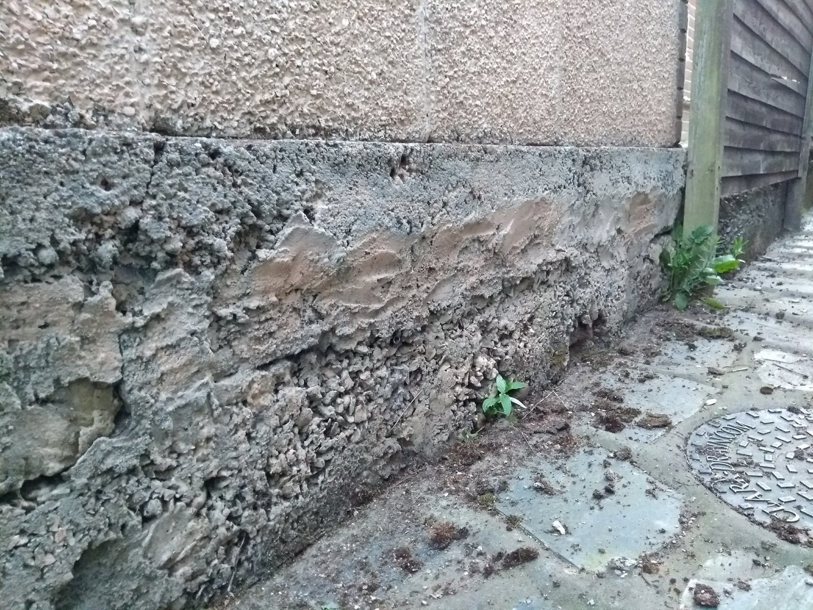 I'm looking to smooth the neighbours garage base that is part of my garden wall but there are some areas that would need patching before I put a smoother render on and paint it.