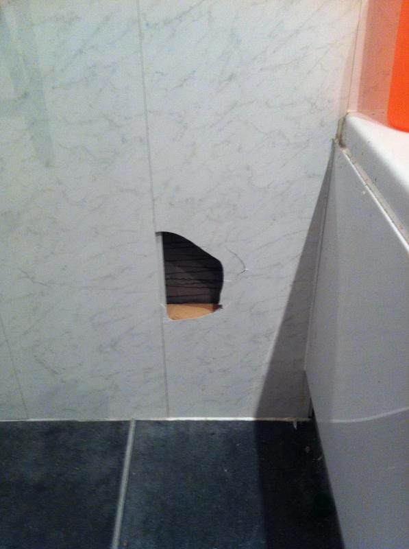 I have a bathroom cladded with the cheapy plastic TG marble effect and in a few places there have been knocks/holes.